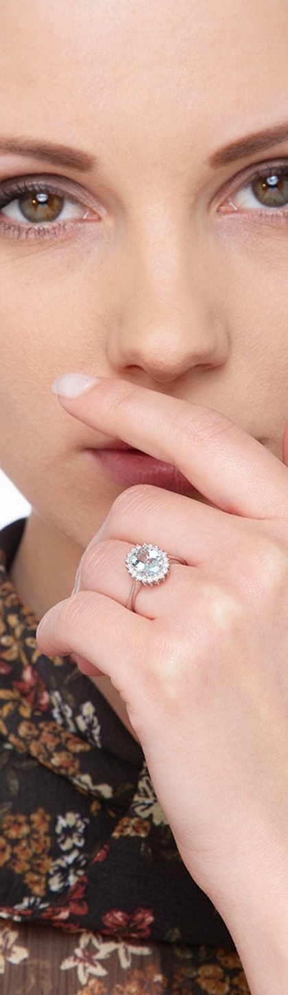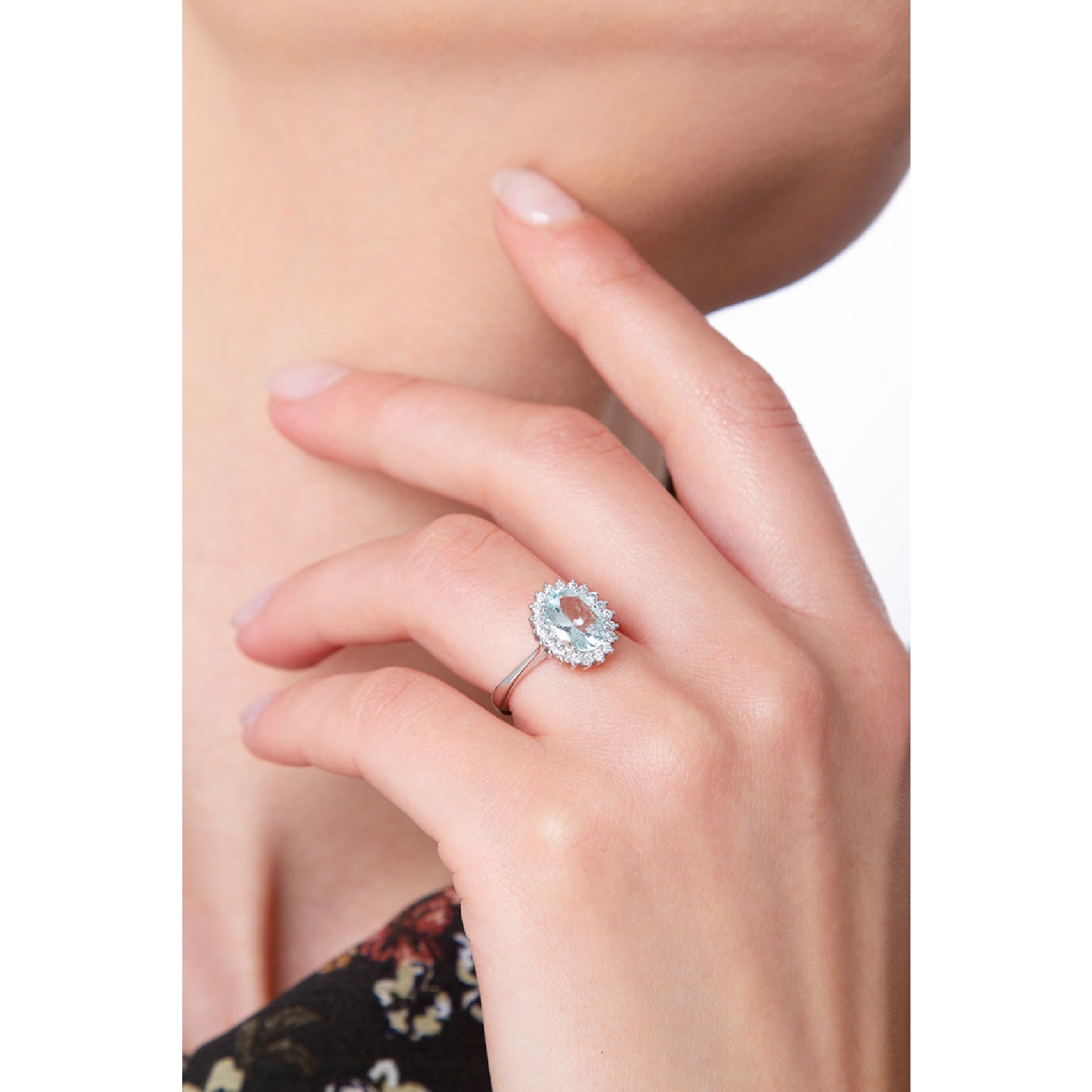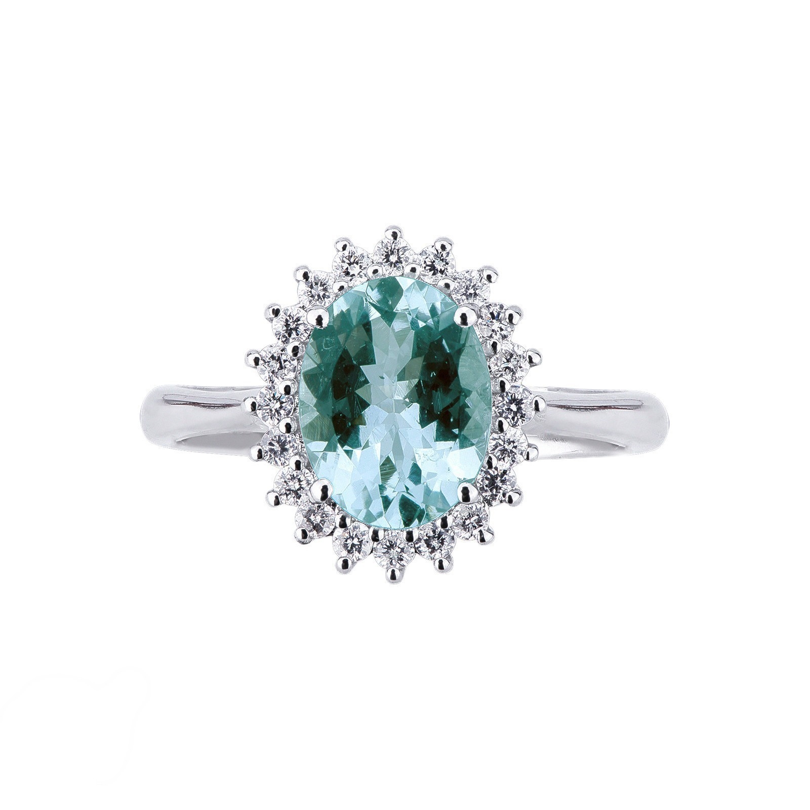 Anillo en oro blanco 750 con aguamarina y diamantes