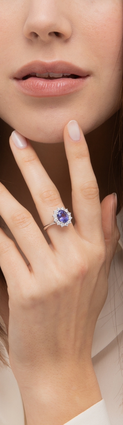 Anillo en oro blanco 750 con una tanzanita ovalada