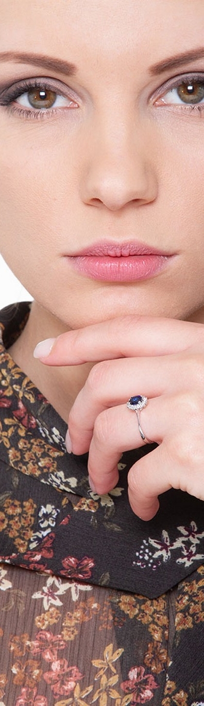 Anillo en oro blanco18 quilates con zafiro azul talla ovalada