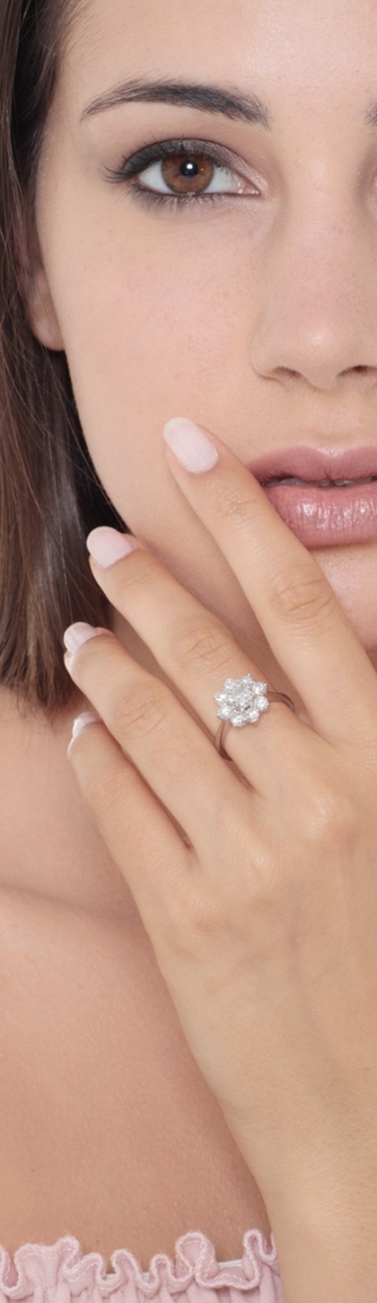 Anillo Flor clásico en oro blanco de 18k con diamantes