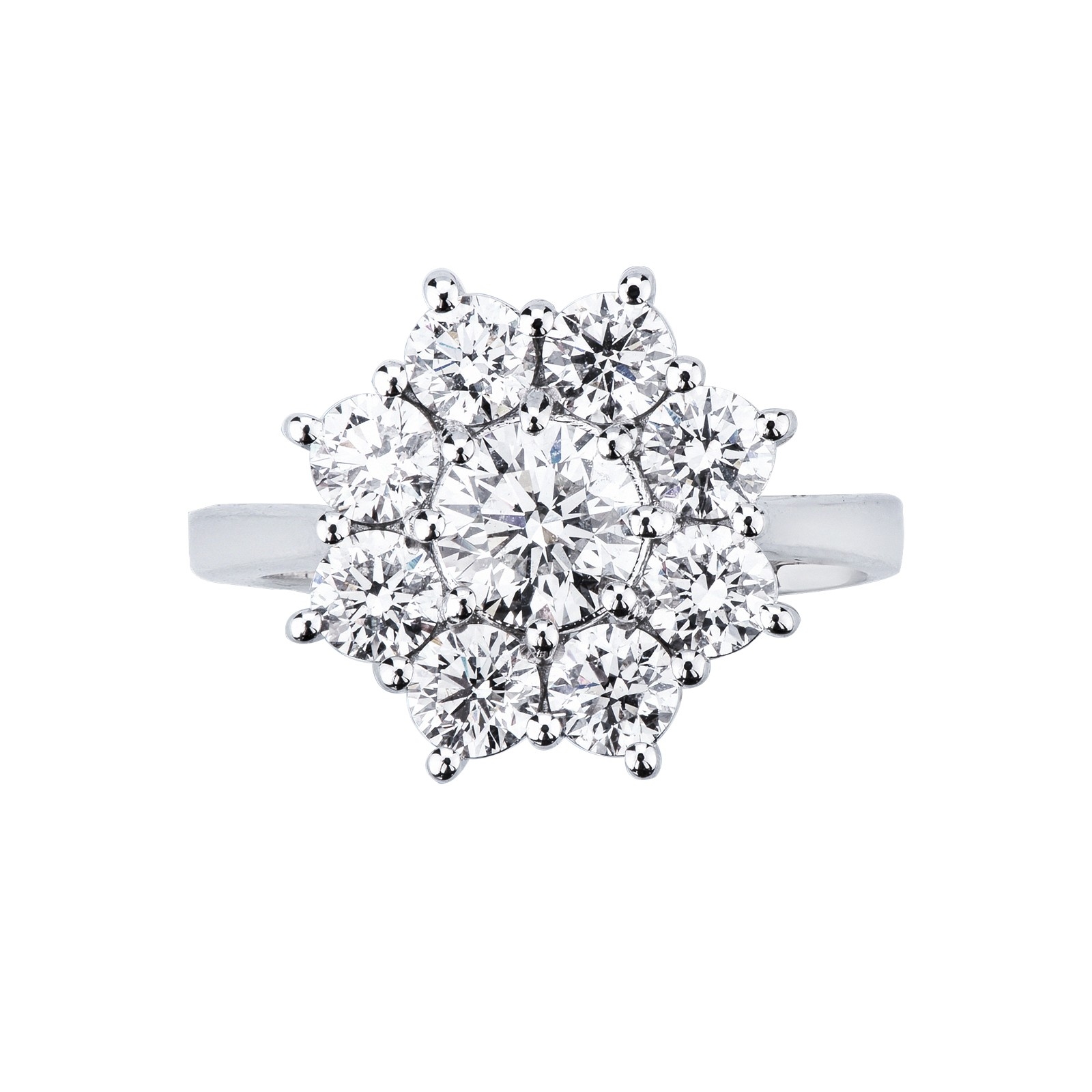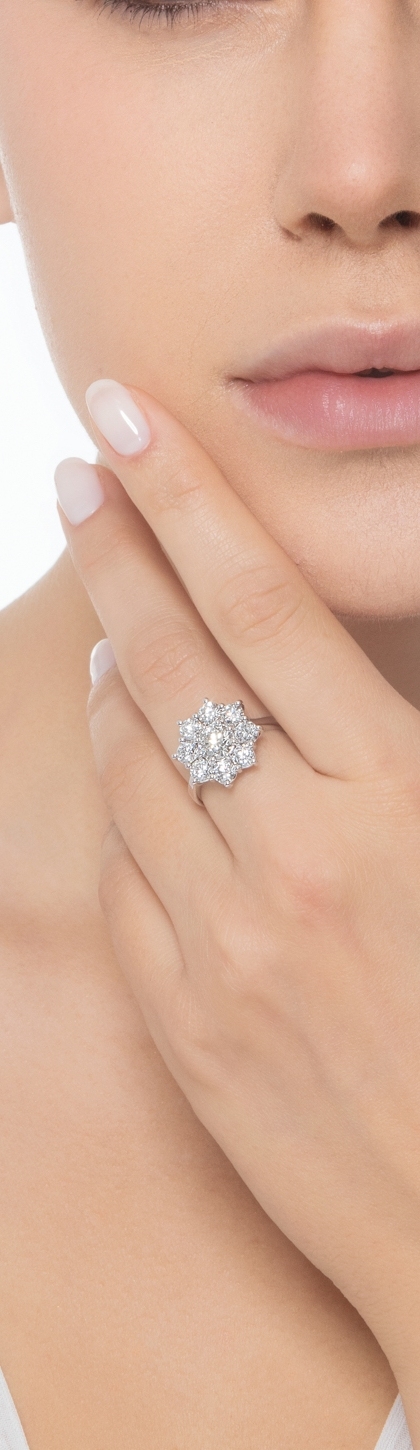 Anillo halo de flor en oro blanco 750 con diamante central CT1.00