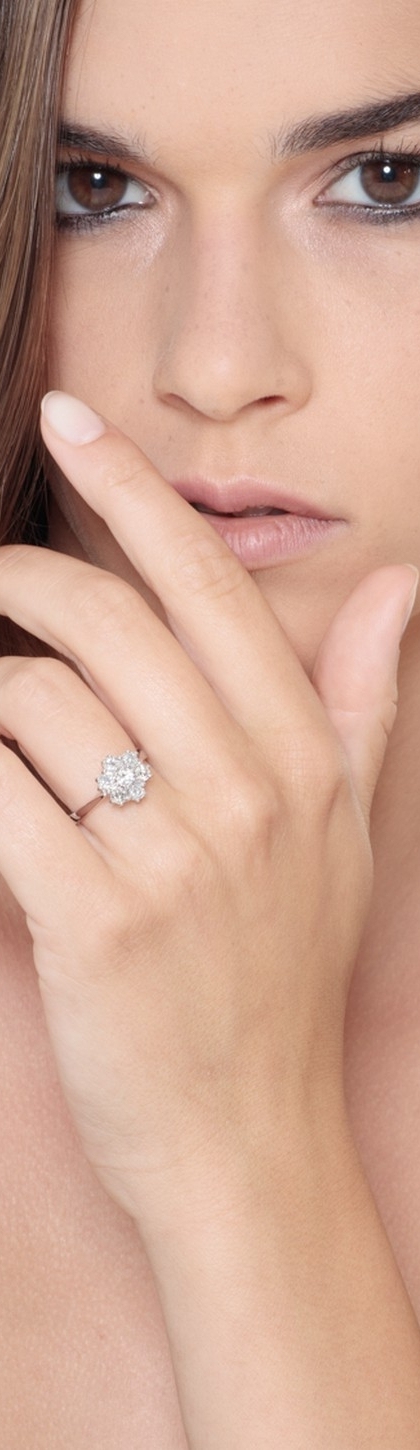 Anillo halo en oro blanco 18k con diamantes 0,20 ct
