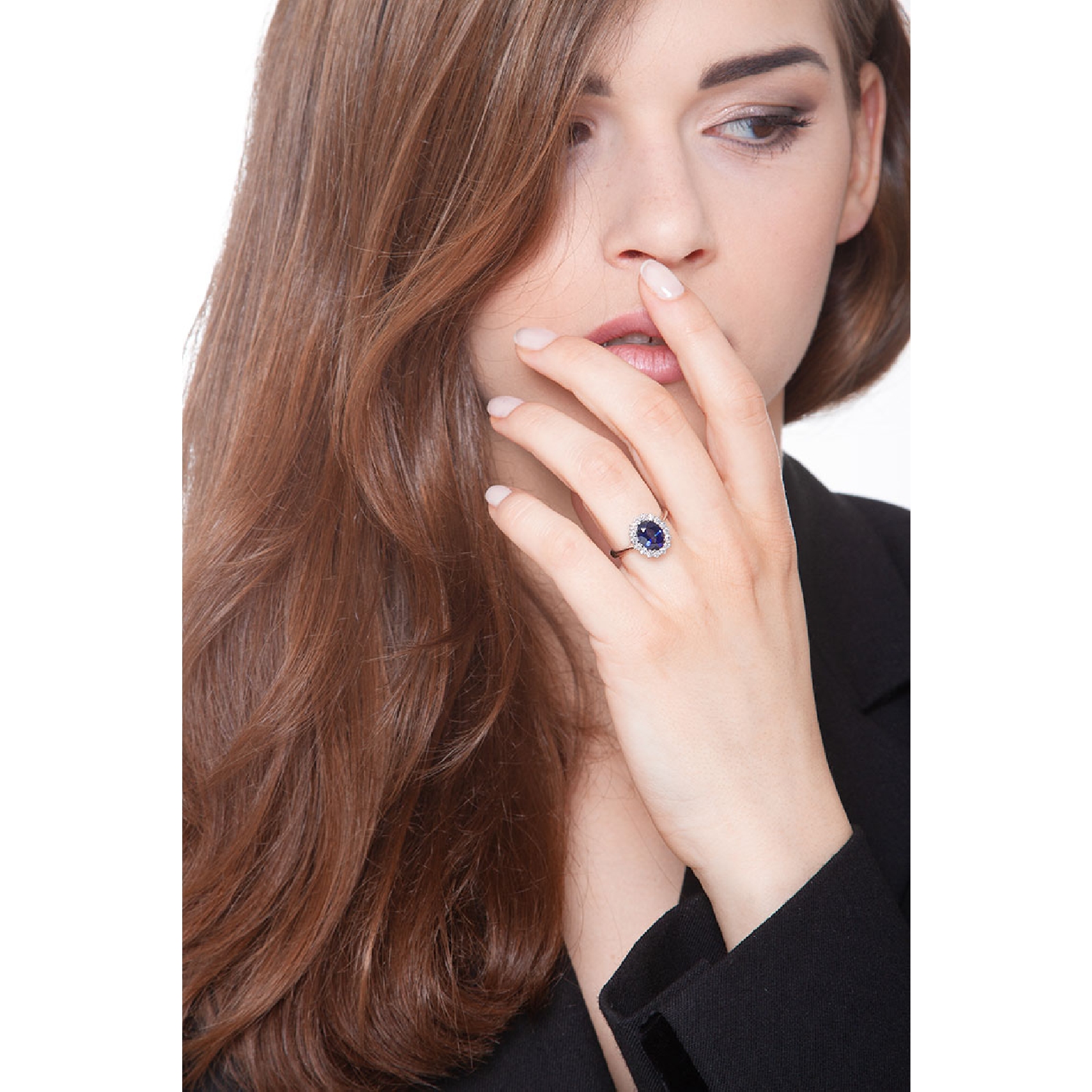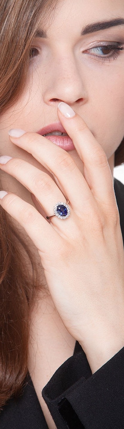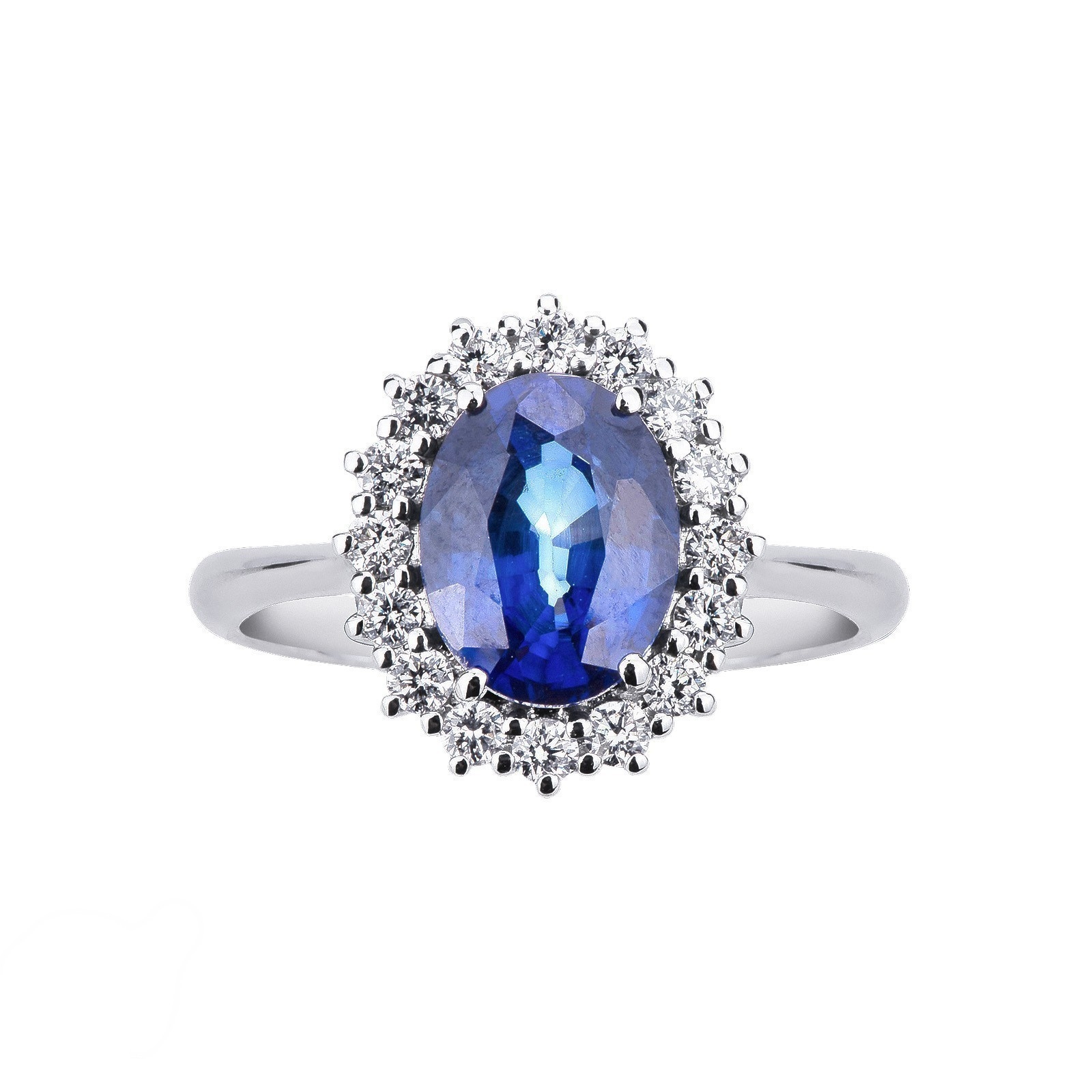 Anillo Lady Di con zafiro azul y diamantes en oro blanco 18k
