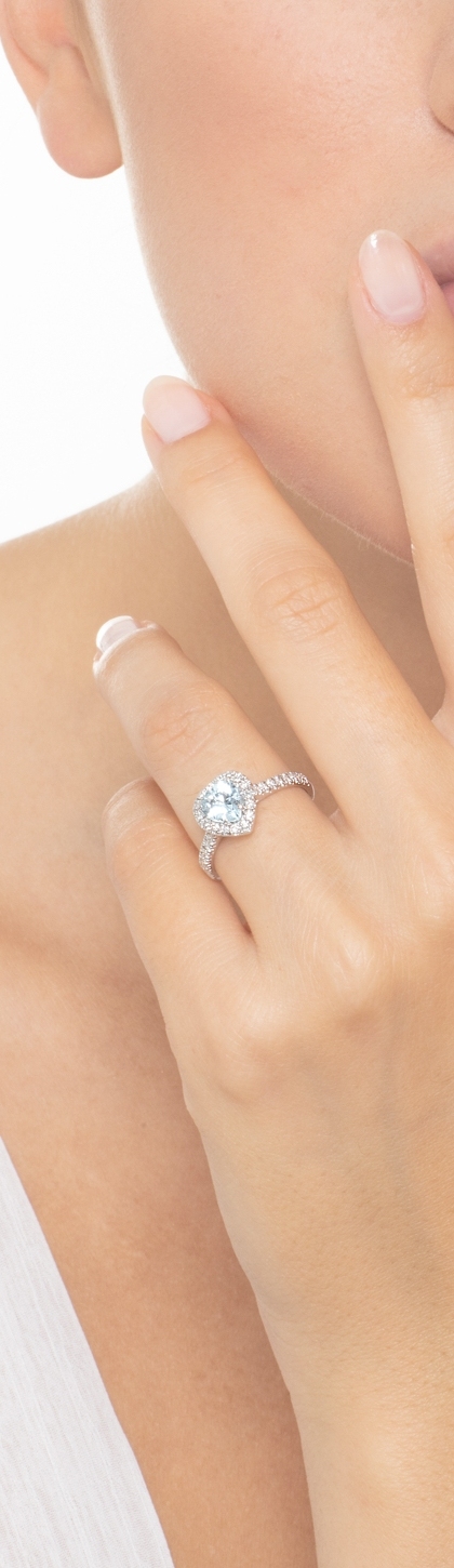Anillo mujer en oro blanco de 18k con aguamarina y diamantes