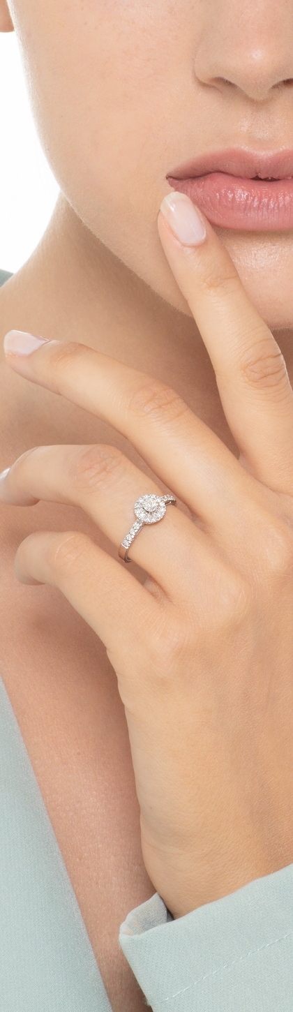 Solitario de oro blanco 18K con diamante central y laterales