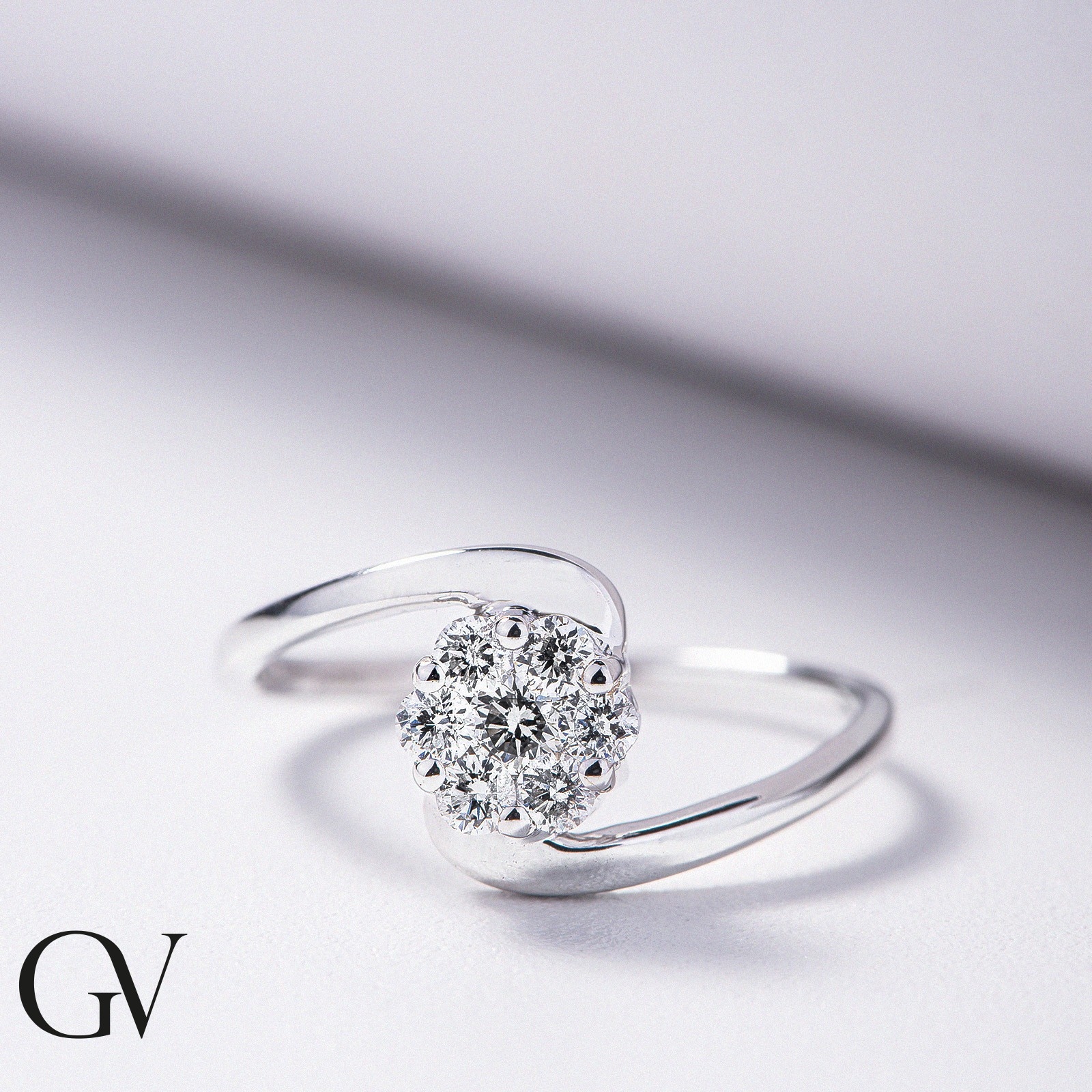 Anillo Contrarié Flor en Oro Blanco 750 con Diamantes