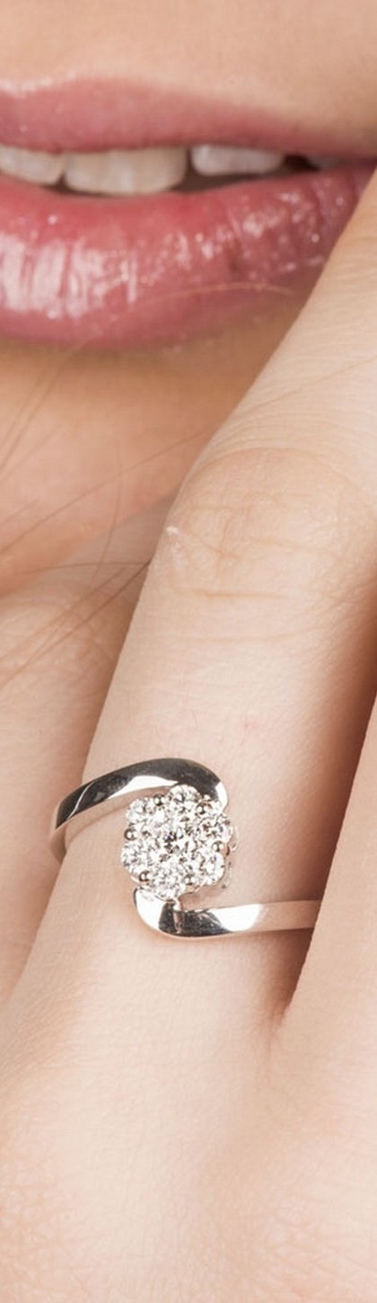 Anillo flor abierto en oro blanco 18k con diamantes