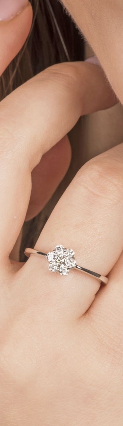 Anillo flor oro blanco 18k con diamantes