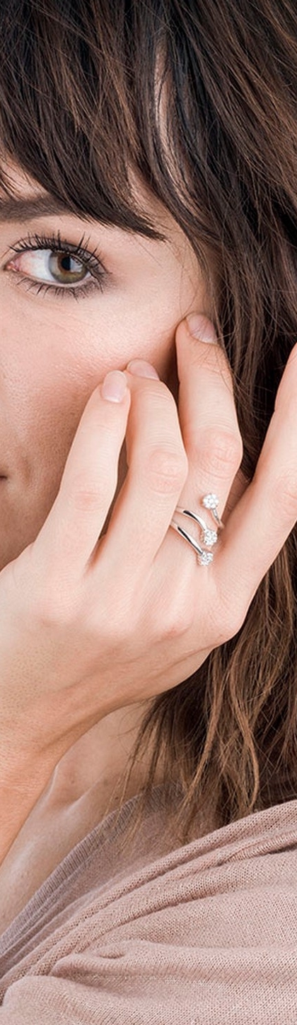 Anillo trilogy contrarié en oro blanco de 18k con diamantes