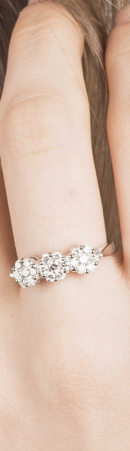 Anillo modelo trilogy en oro blanco de 18 quilates con tres diamantes talla brillante engastados, color H y pureza VS. Una joya clásica y sofisticada, perfecta para celebrar el amor y momentos inolvidables.