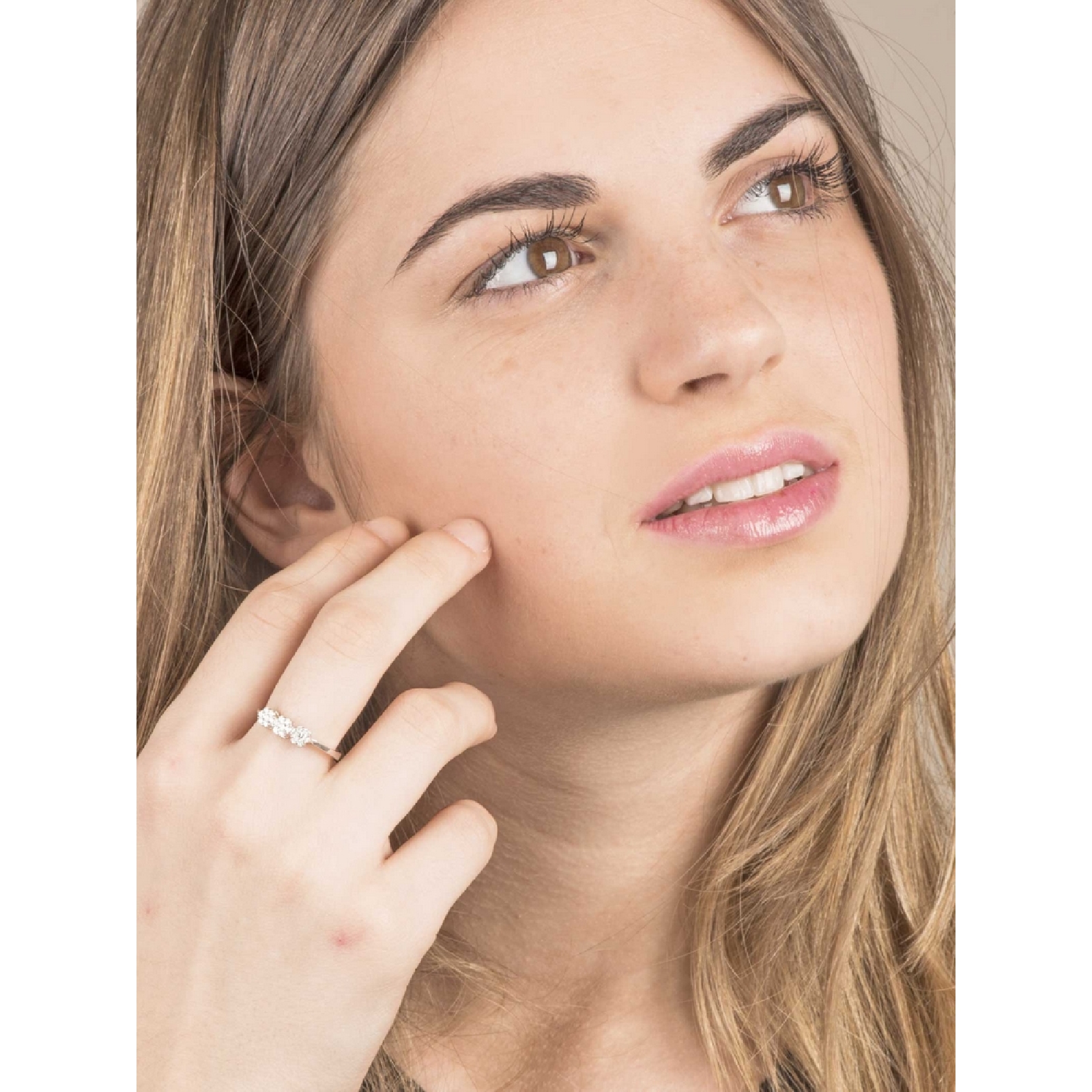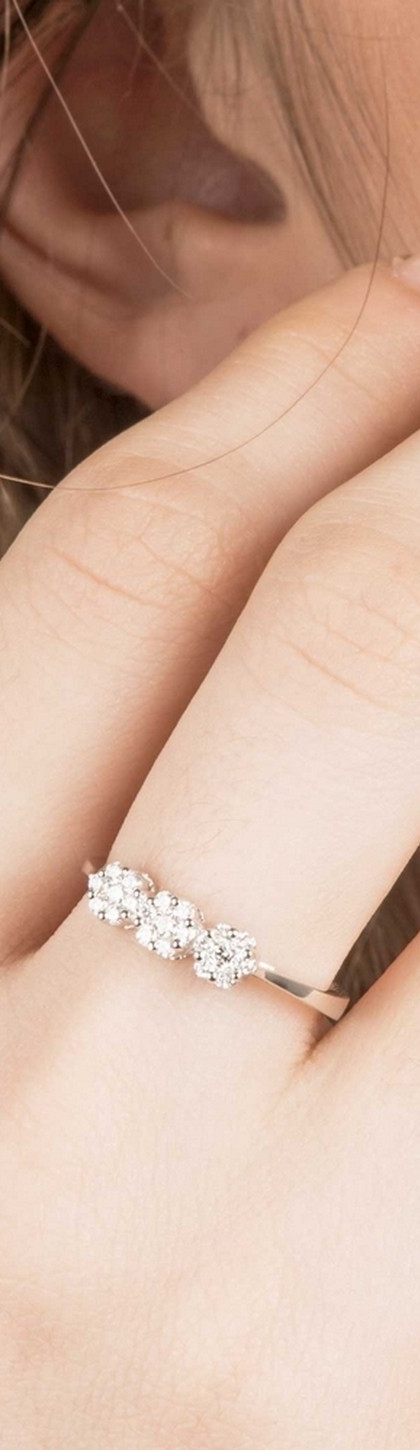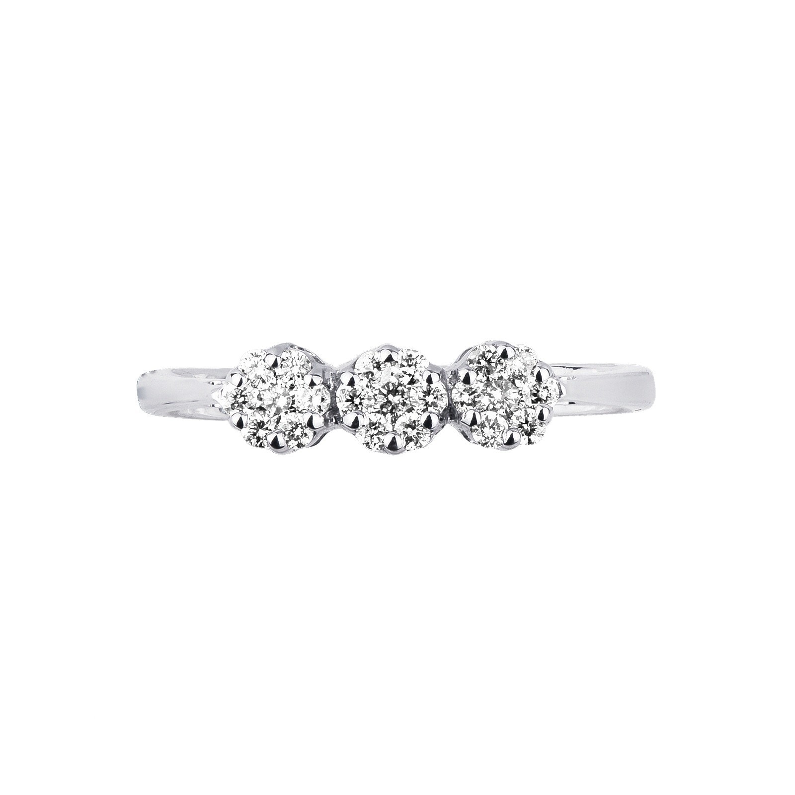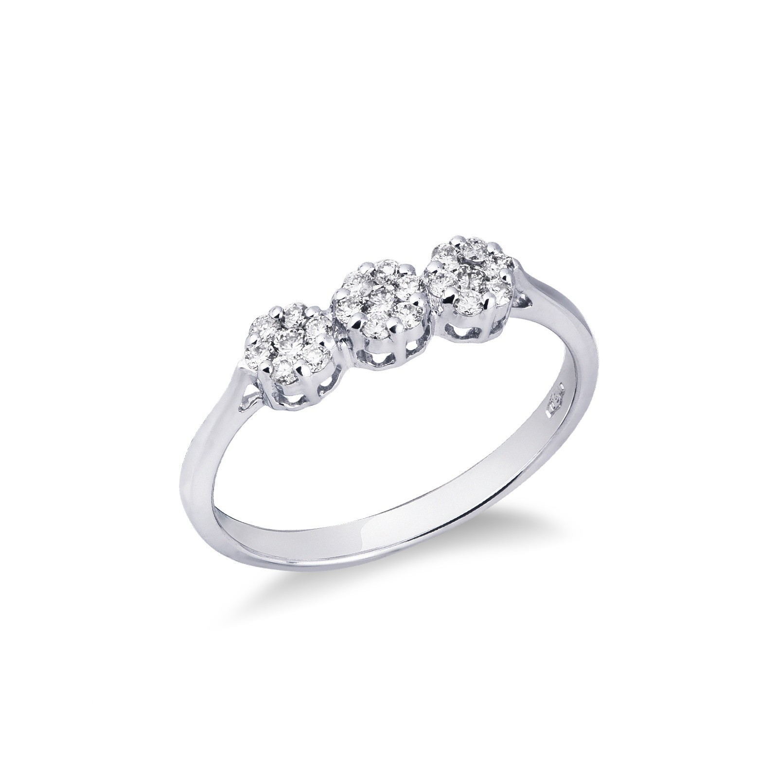 Anillo trilogy flores ilusión en oro blanco 18k con diamantes