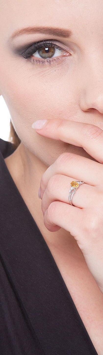 Anillo de Oro Blanco con Citrino Ovalado y Diamantes