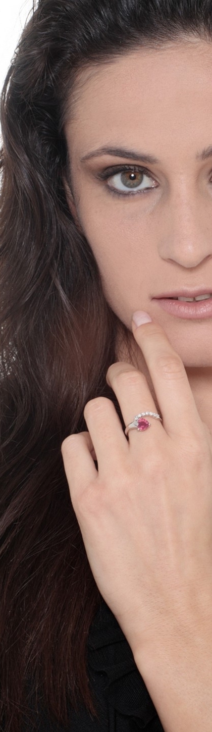 Anillo de oro blanco de 18 kilates con rubí en forma de corazón y diamantes