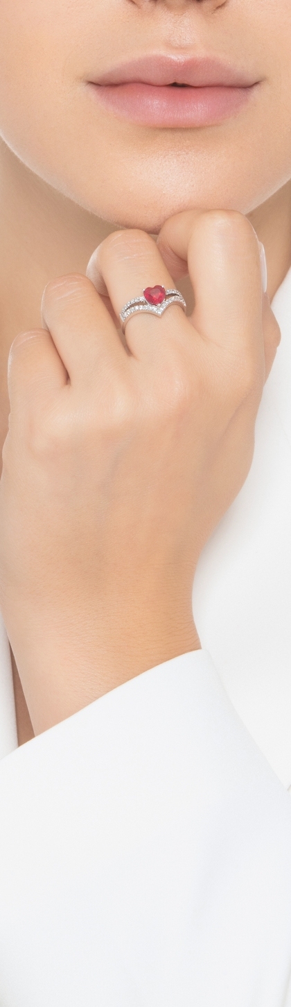 Anillo de oro de 18 kilates con rubí y doble fila de diamantes