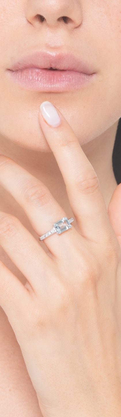 Anillo en oro blanco 18k con una aguamarina