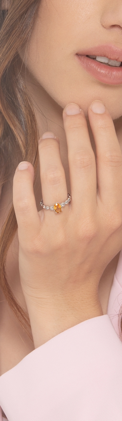 Anillo en oro blanco de 18 quilates con un citrino y 2 diamantes