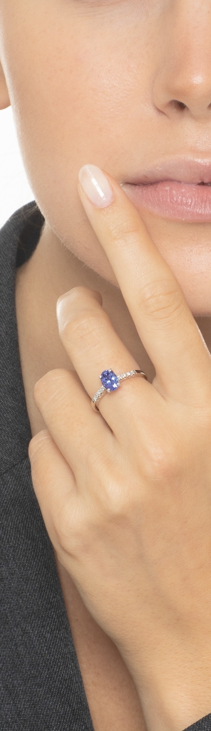 Anillo oro blanco 18 quilates con tanzanita central y diamantes