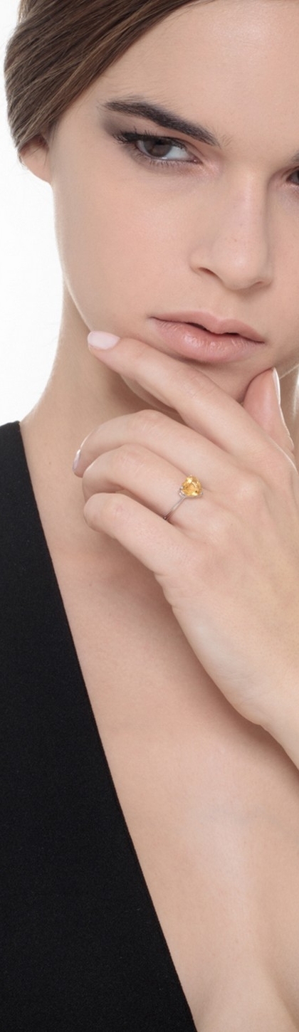 Anillo romántico en oro blanco 18k con un citrino