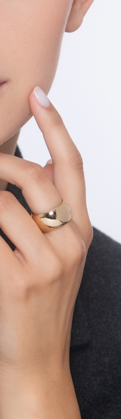 Anillo ancho brillante en oro amarillo 18k