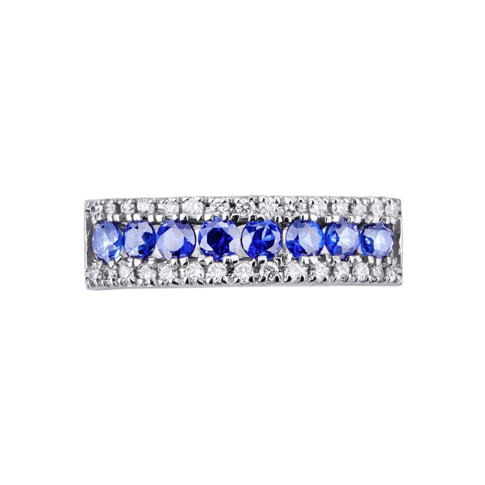 Anillo banda central con diamantes y zafiros en Oro 18k