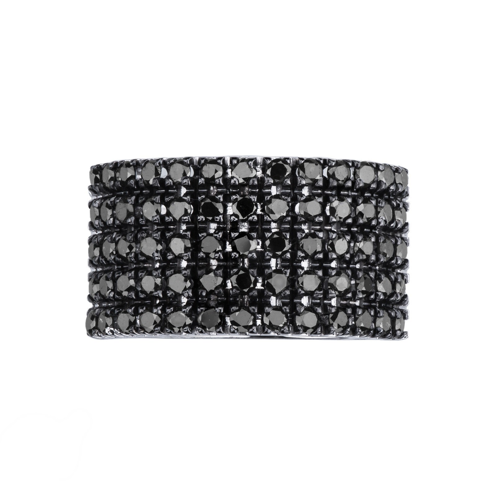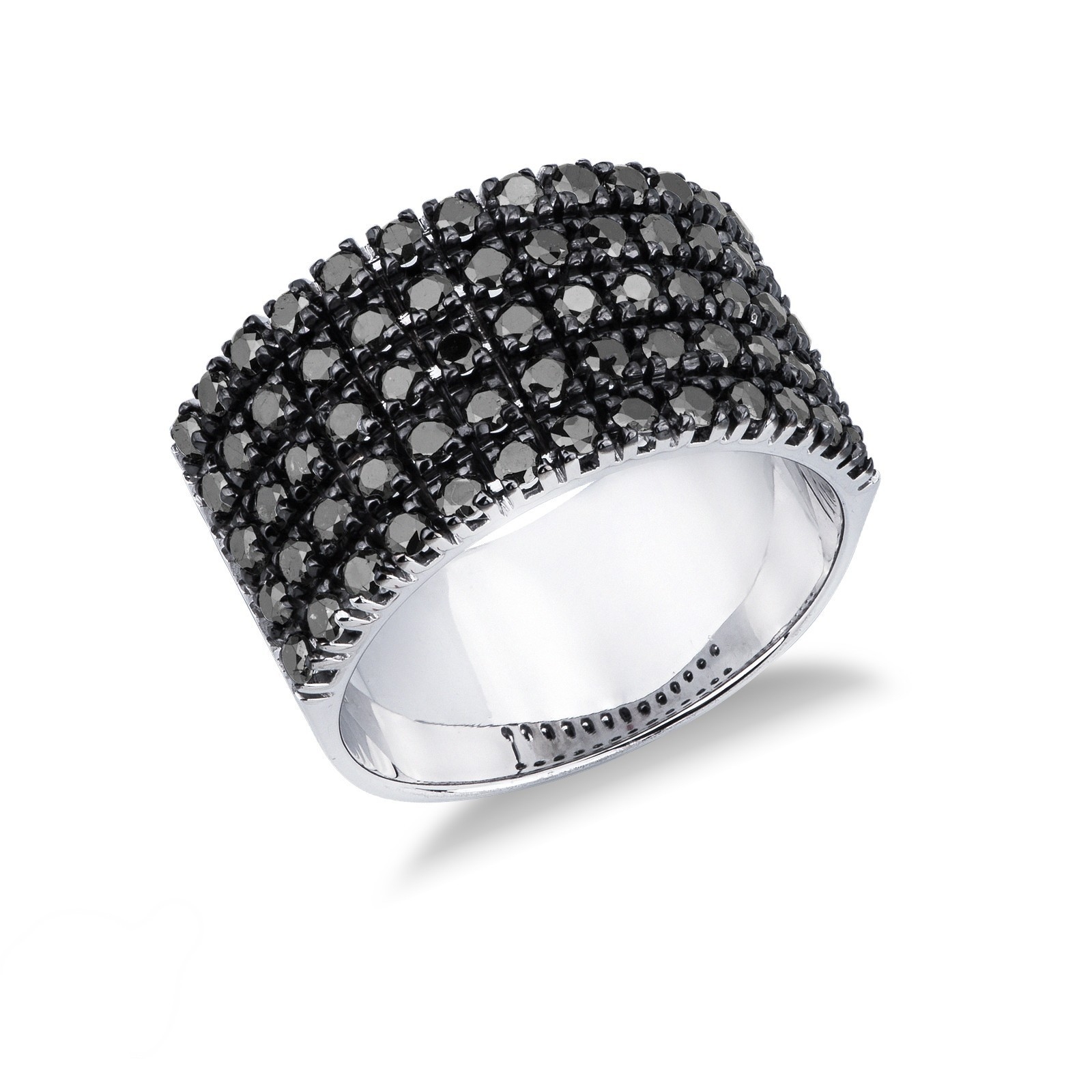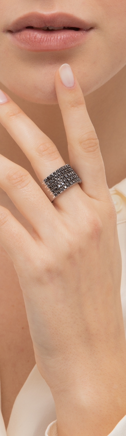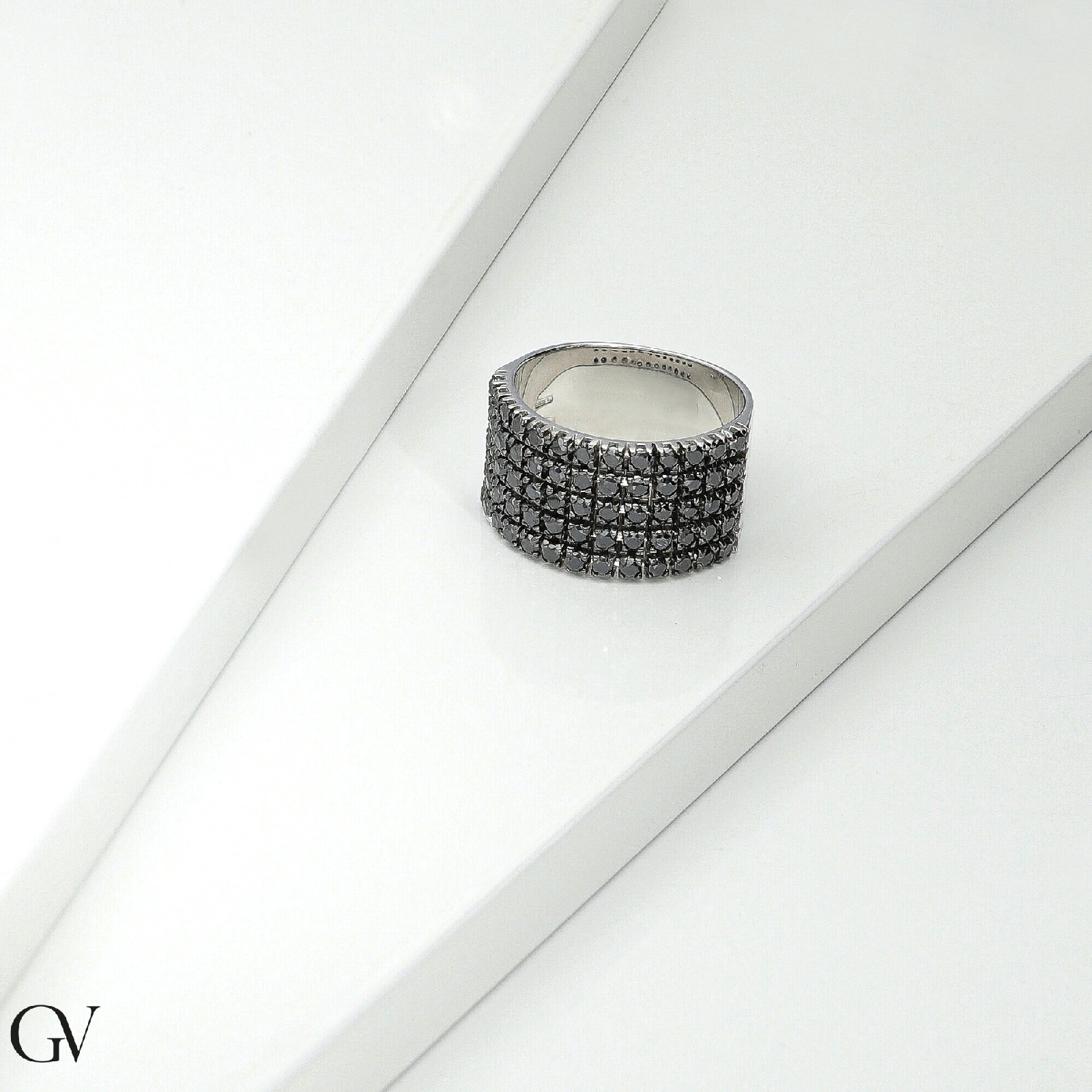 Anillo banda en oro blanco 18k con diamantes negros