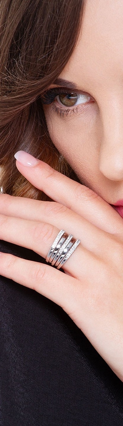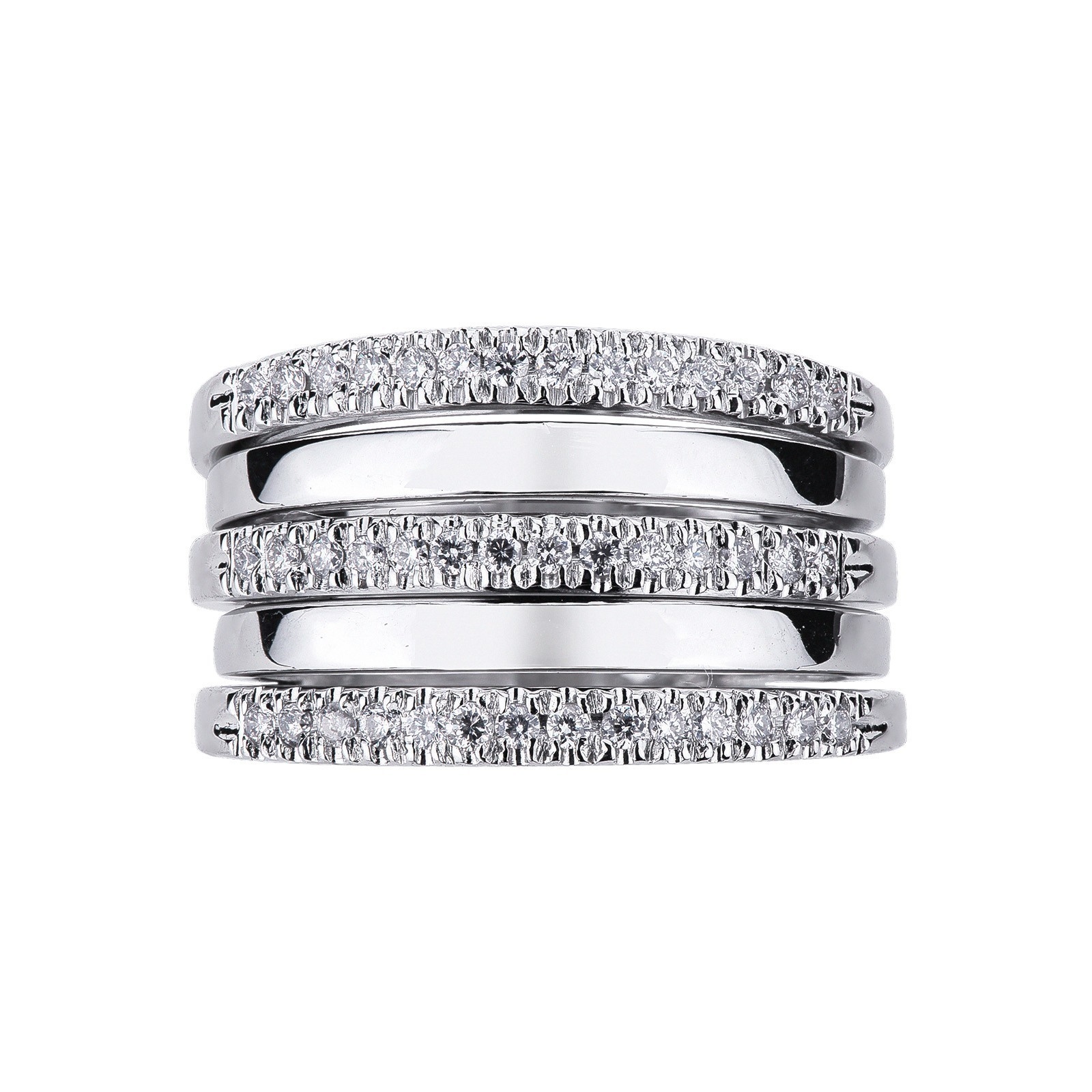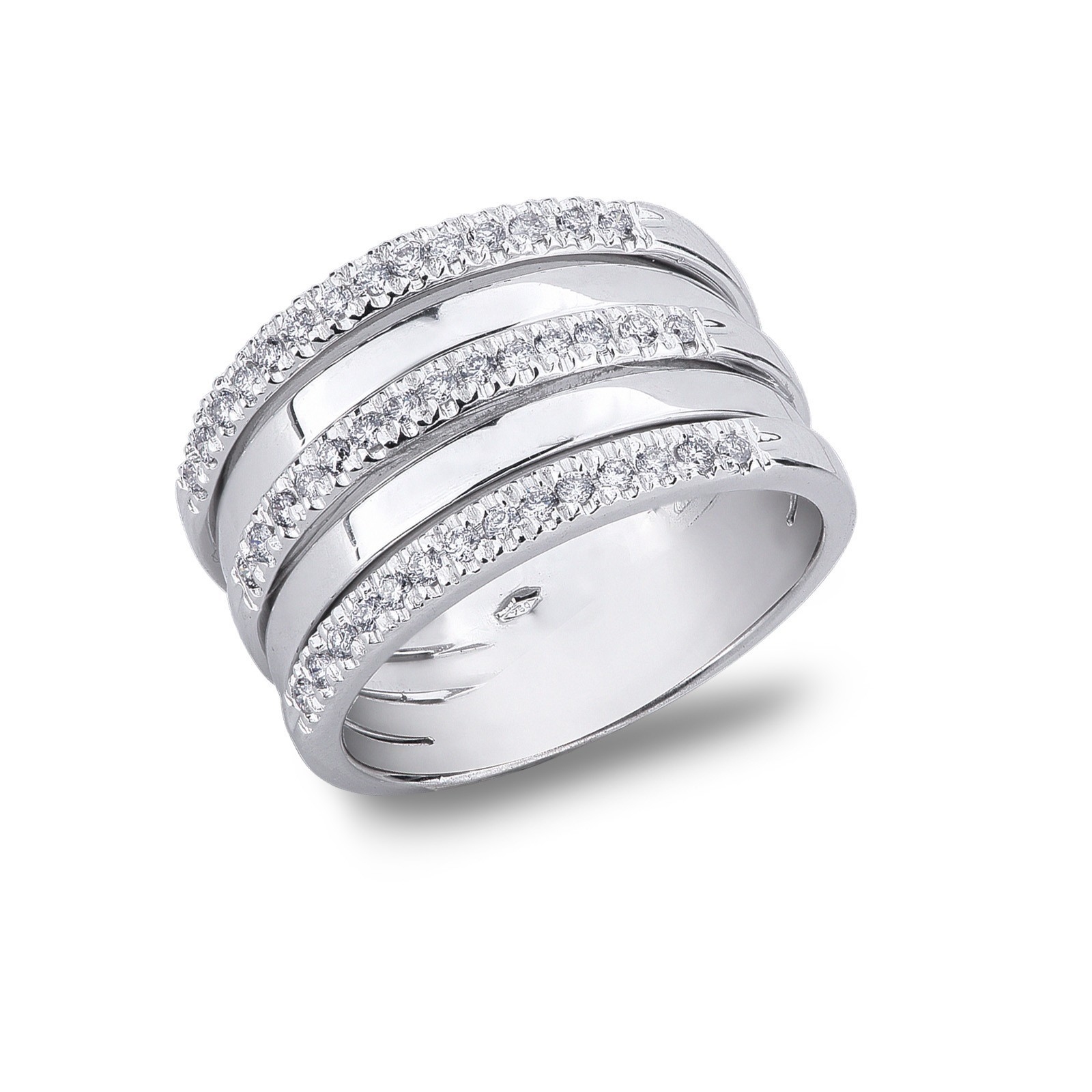 Anillo banda en oro blanco 18k con tres filas de diamantes
