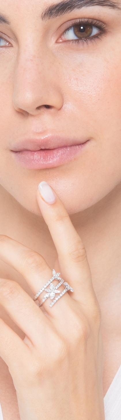 Anillo de banda 3 vueltas en oro blanco 18k con diamantes