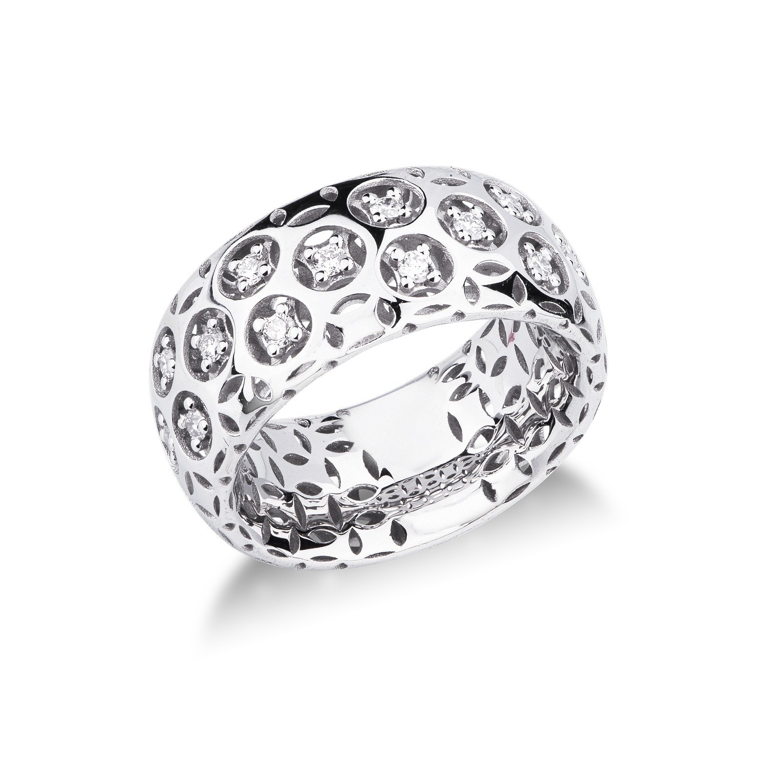 Anillo de banda calada en oro blanco 18k con diamantes