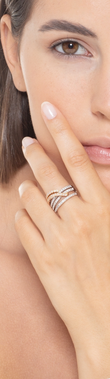 Anillo de banda en oro blanco y rosa 18k con diamantes