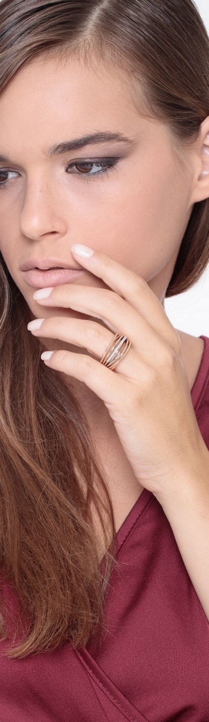 Anillo de banda en oro blanco y rosa 750 con diamantes