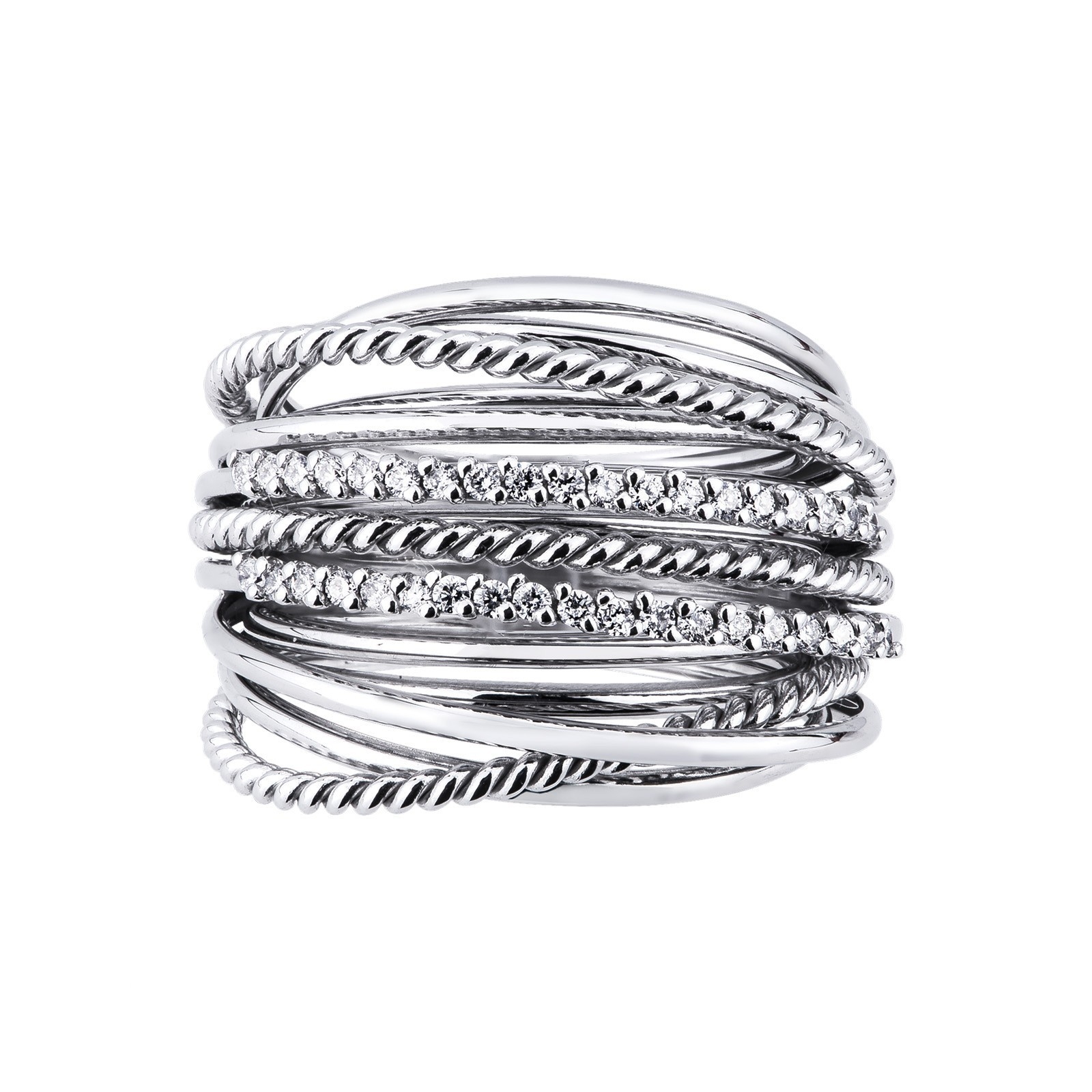 Anillo de fantasía con hilos en oro blanco 18k con diamantes
