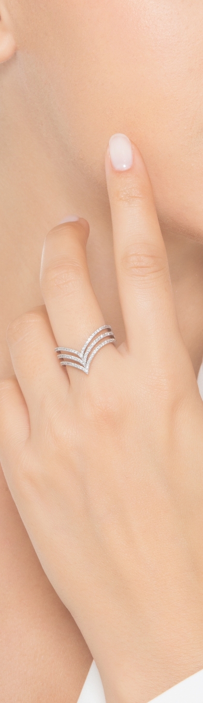 Anillo de tres hileras en Oro Blanco 18k con Diamantes