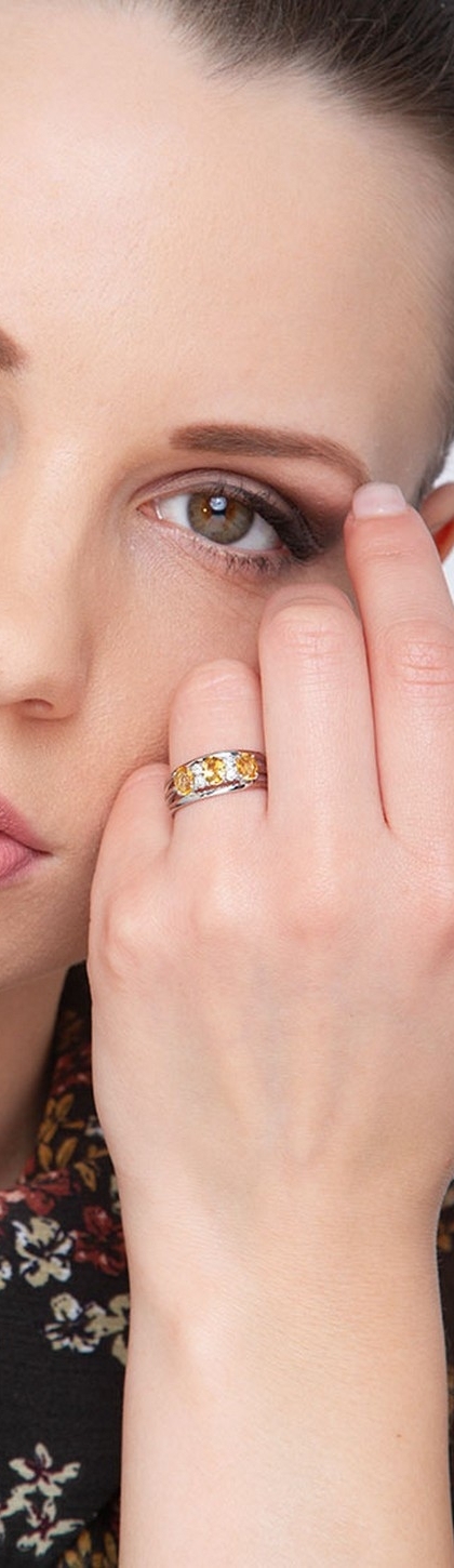 Anillo de triple banda en oro blanco de 18 quilates con 3 citrinos y 4 diamantes