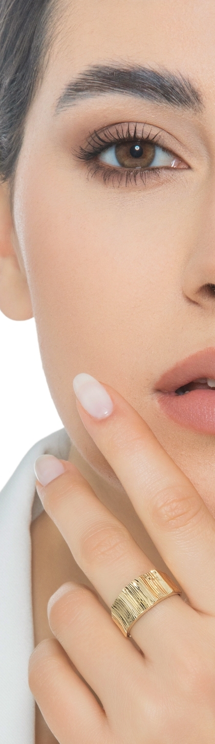 Anillo en oro amarillo de 18k con superficie estriada, una danza de luz y sombras que realza tu estilo.