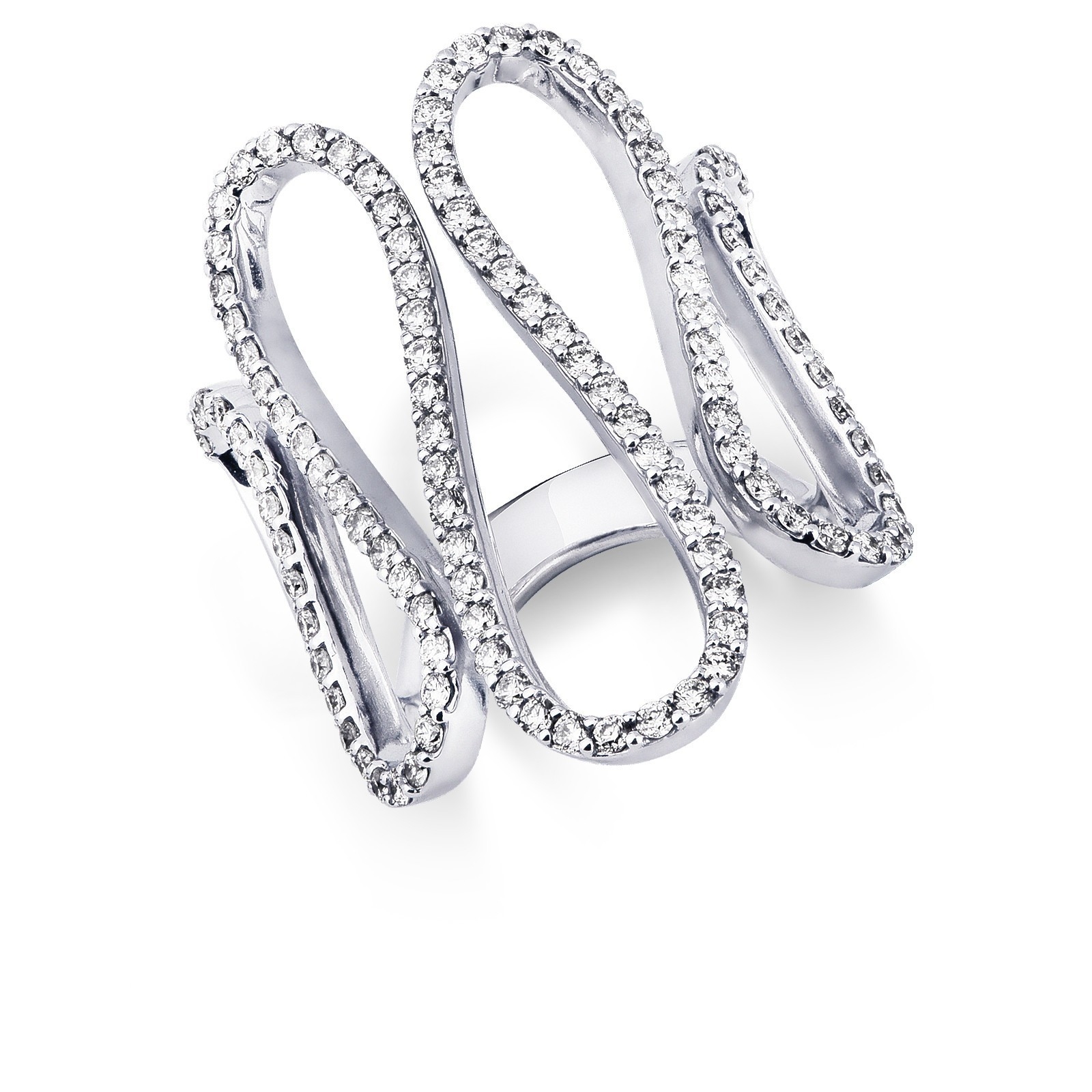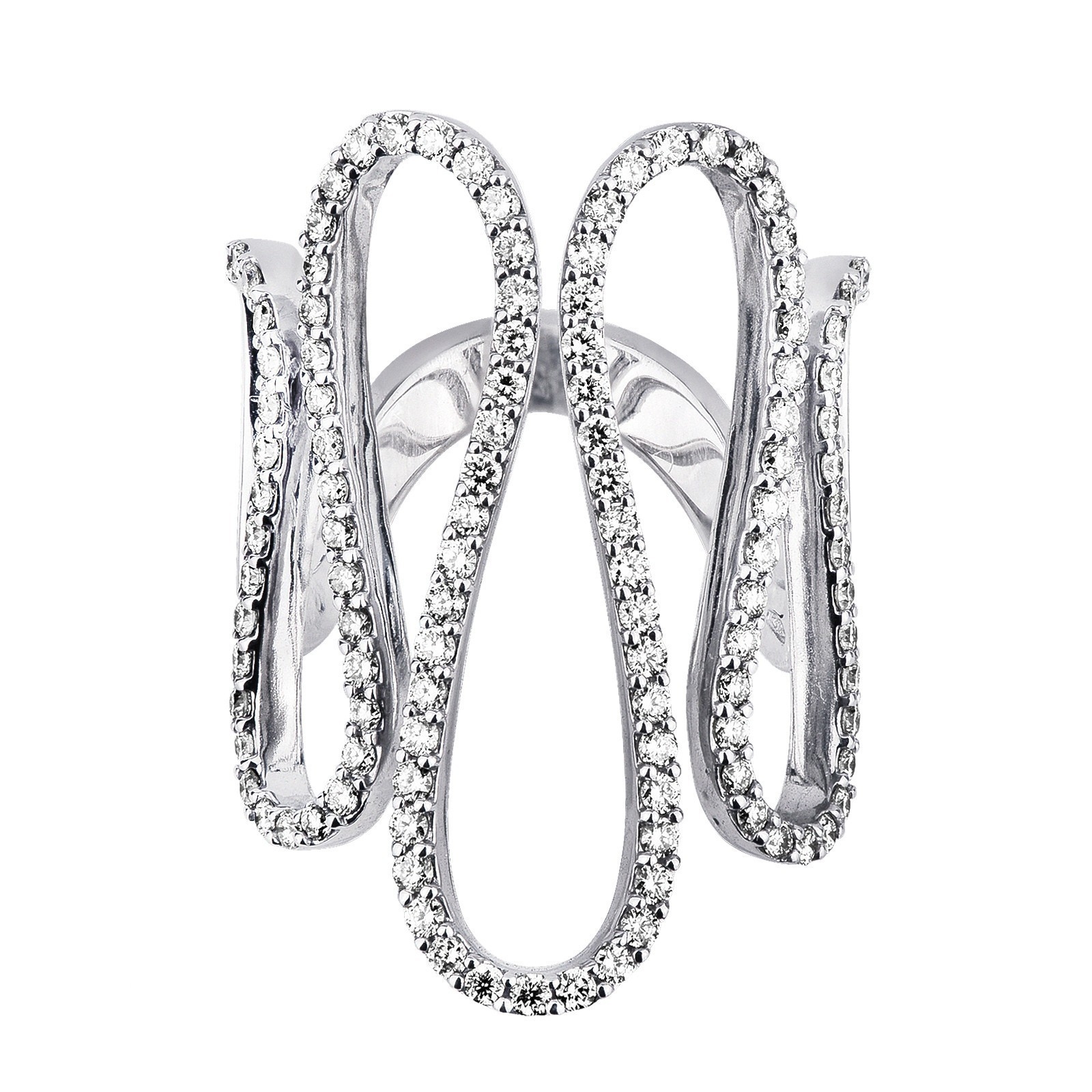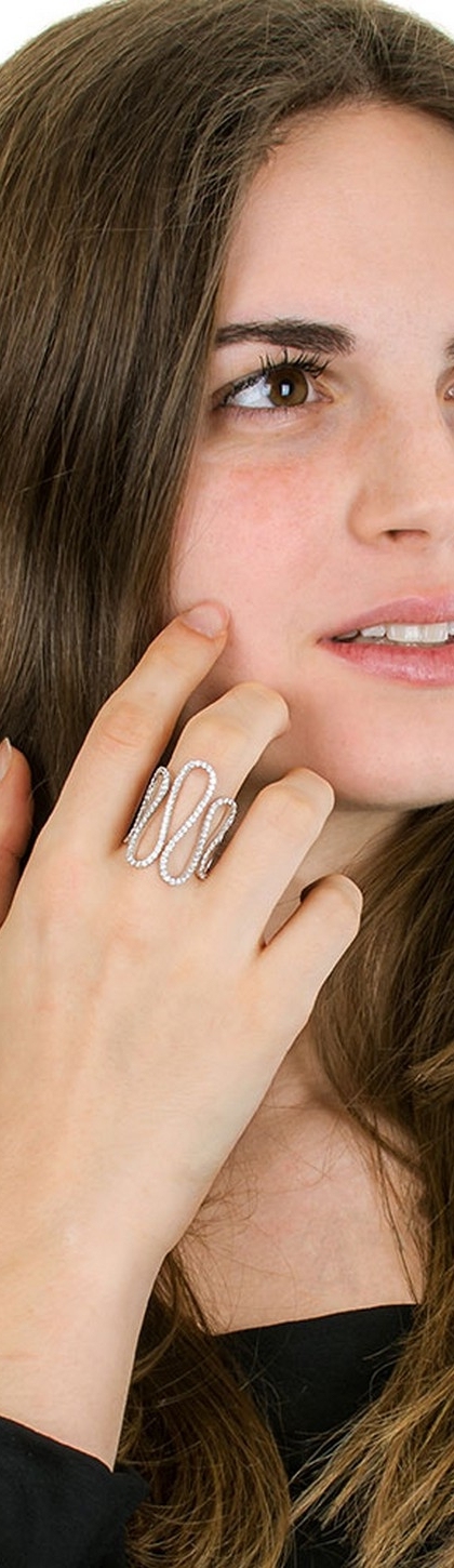 Anillo en oro blanco 18k con diseño ondulado y diamantes