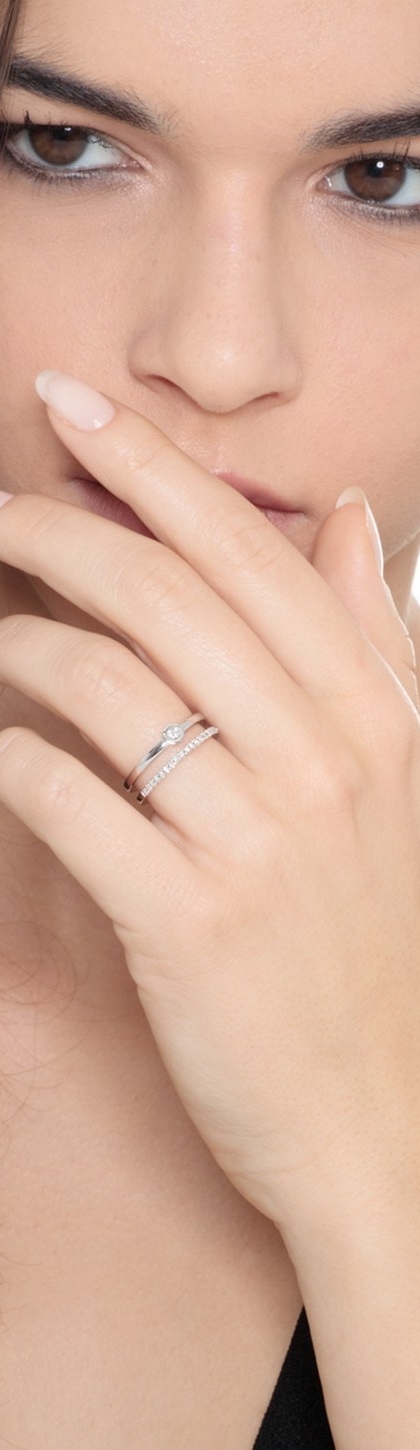 Anillo en oro blanco 18k con dos alianzas con diamantes