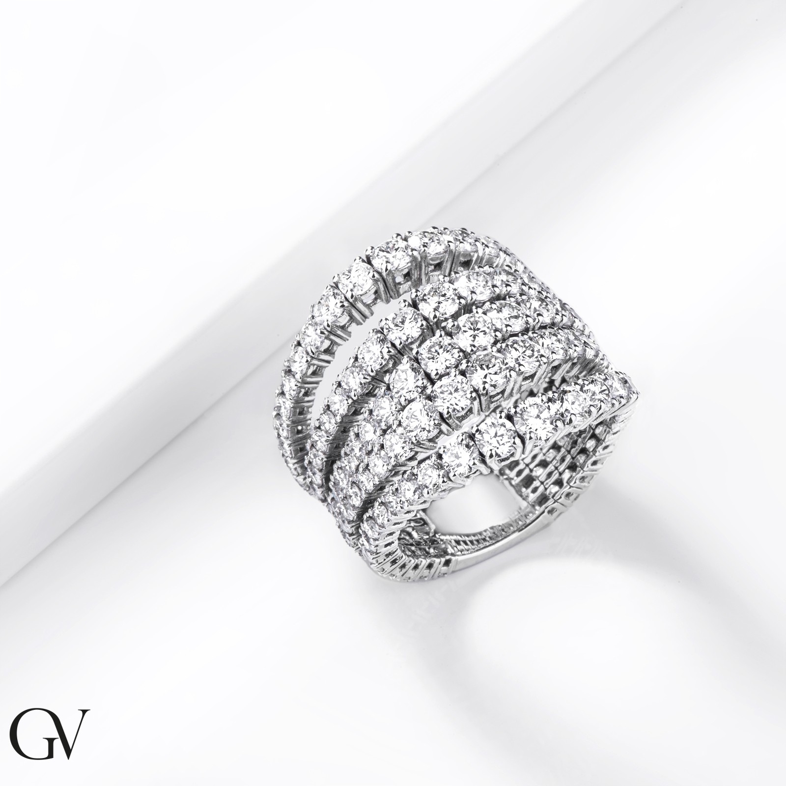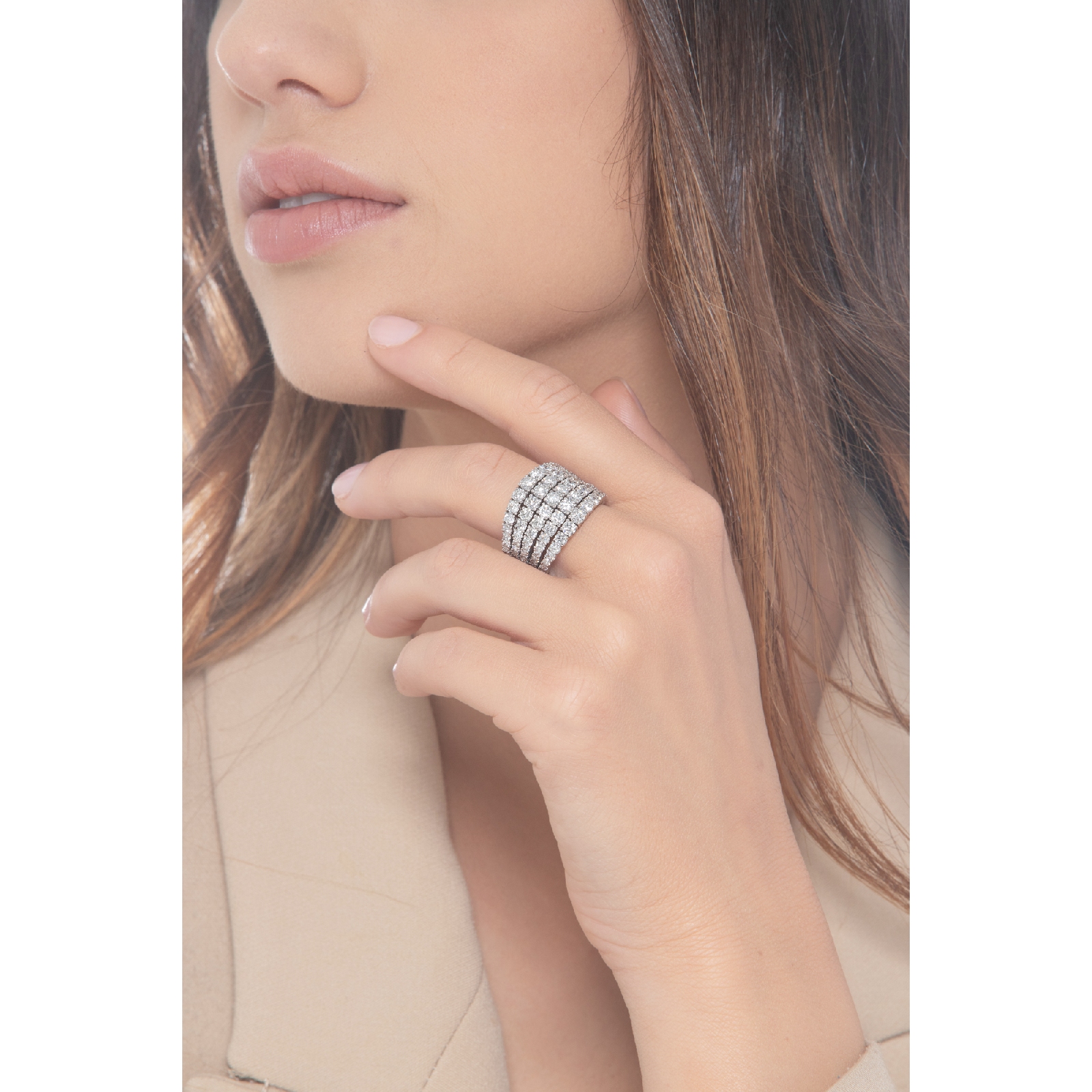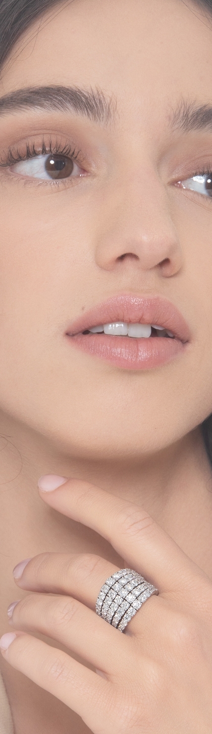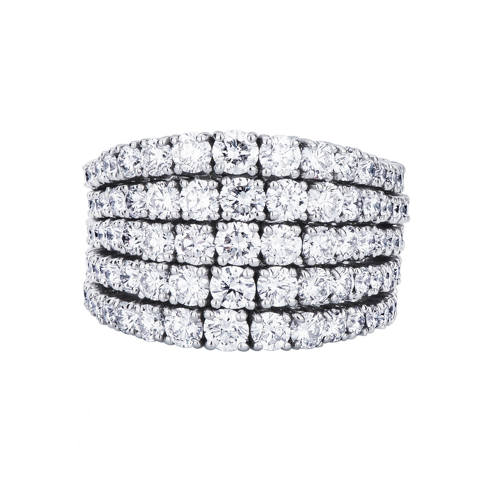 Anillo estilo tennis en oro blanco 18k con cinco filas de diamantes