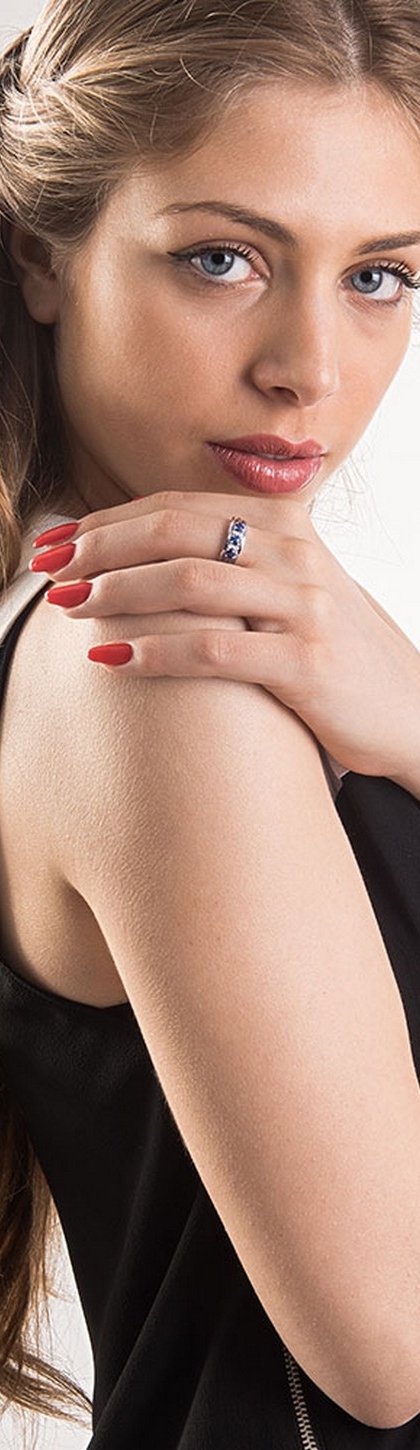 Anillo mujer en oro blanco de 18k con zafiros azules y diamantes