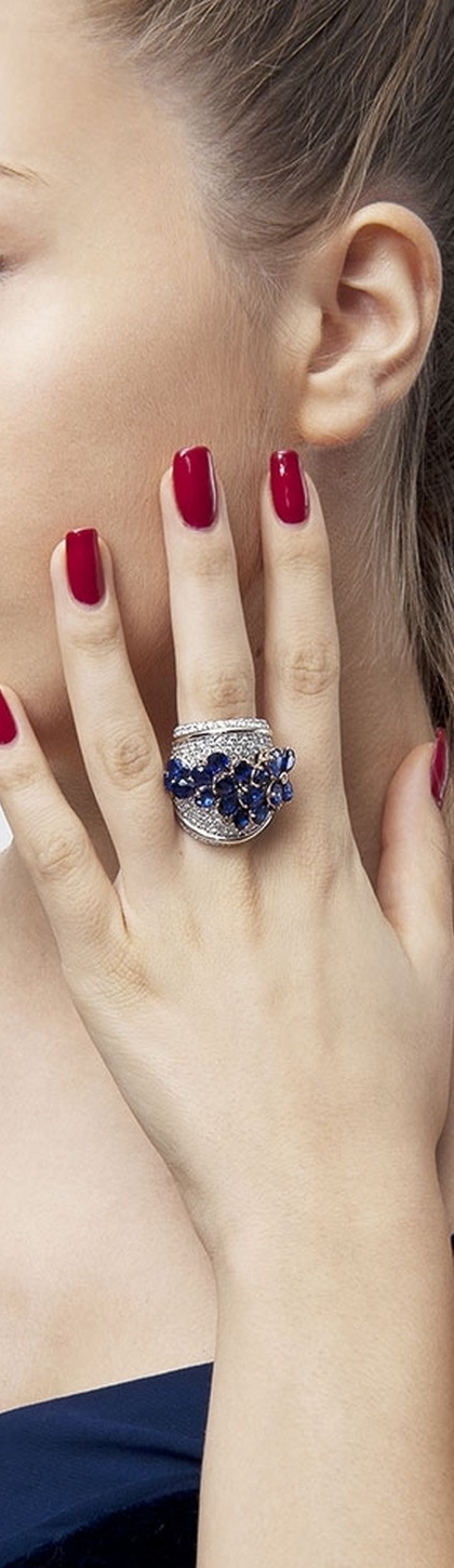 Anillo mujer flores en oro blanco 18k adornado con zafiros