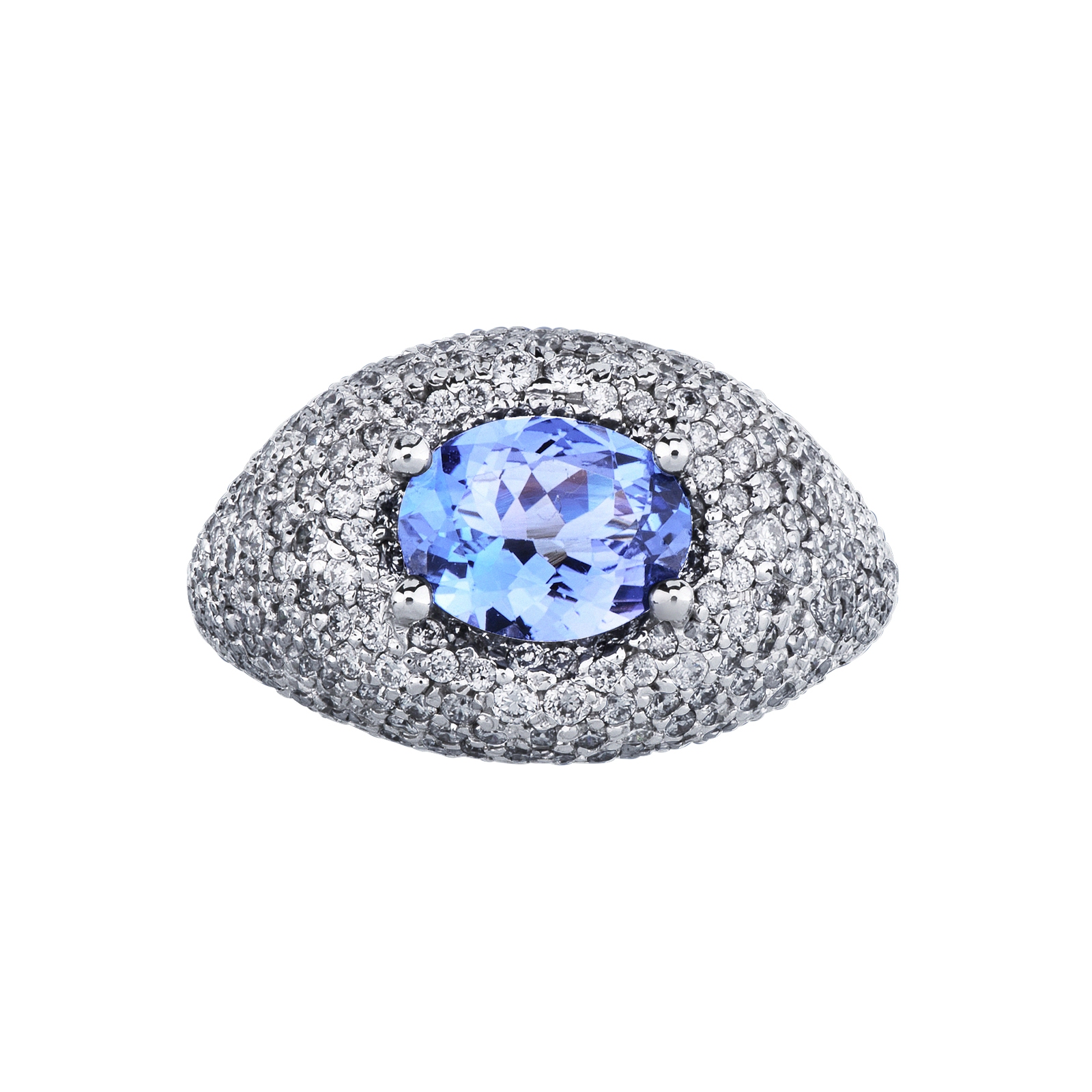 Anillo tanzanita oval y diamantes en oro blanco 18K