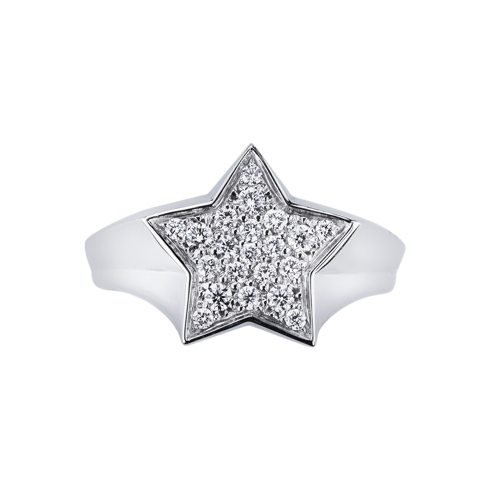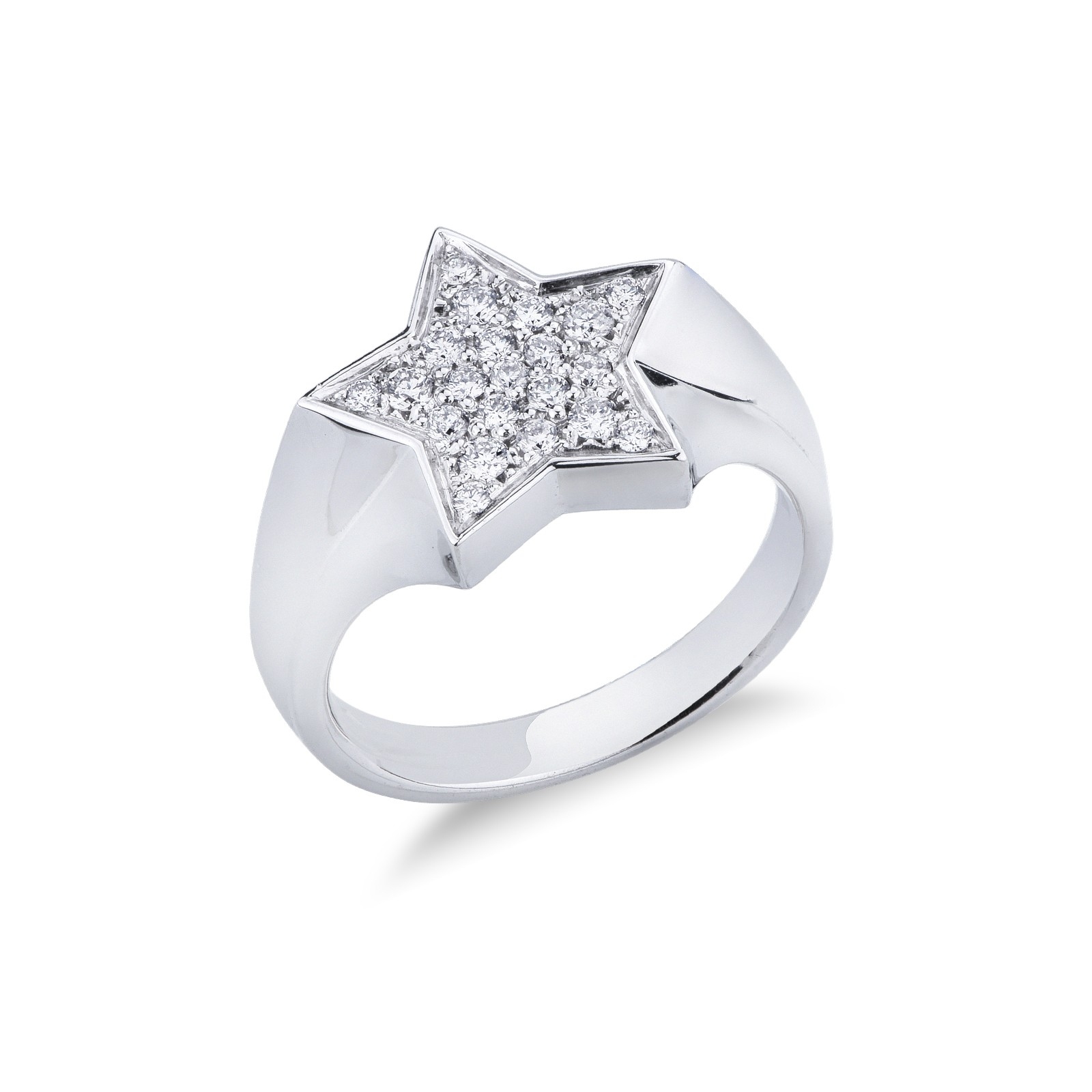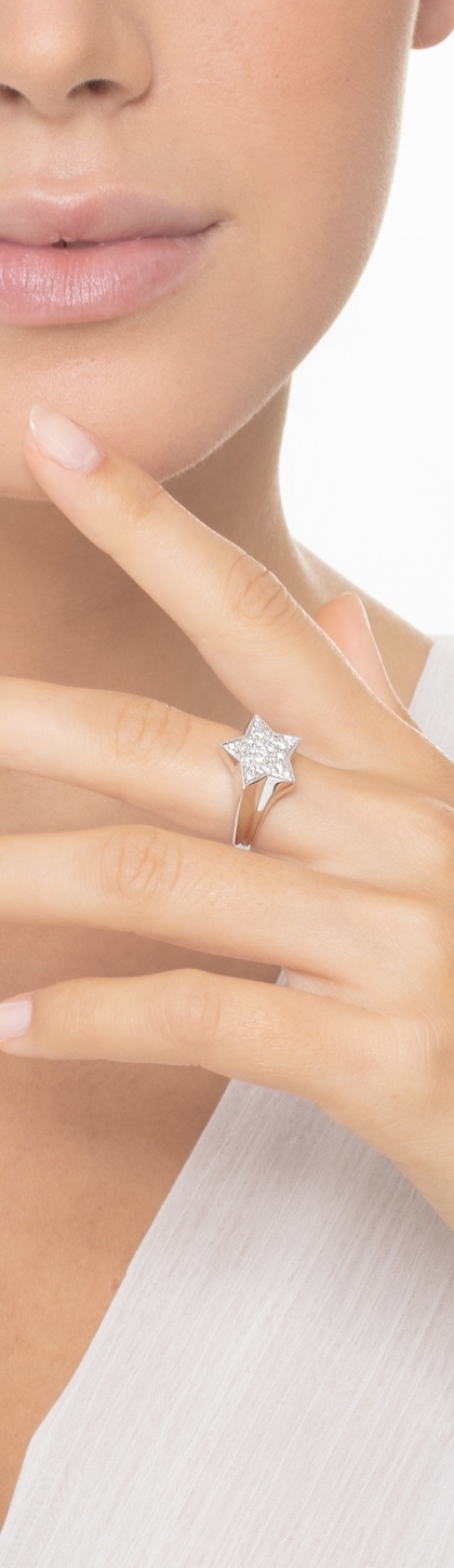 Anillo en oro blanco 18k con pavé de diamantes estrella