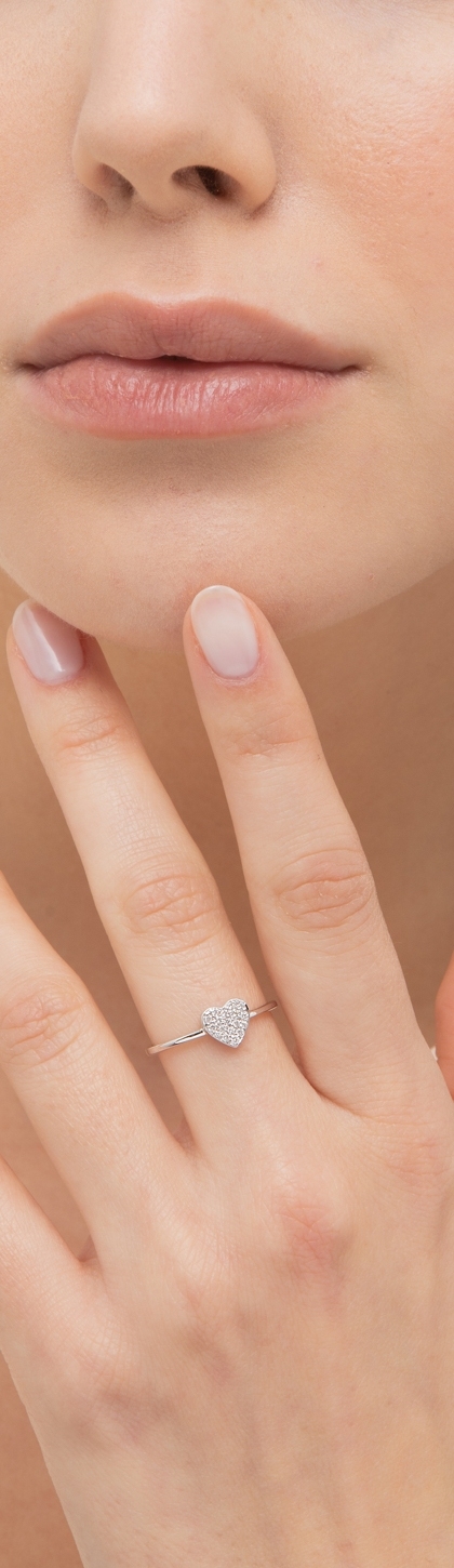 Anillo en oro blanco 18k con pavé en forma de corazon de diamantes