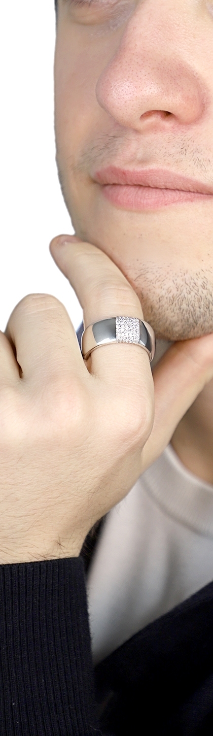 Anillo para Hombre en Oro Blanco 18k con Diamantes
