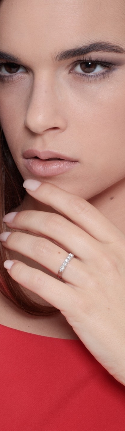 Alianza con 5 diamantes 0,45 quilates en oro blanco de 18 kilates