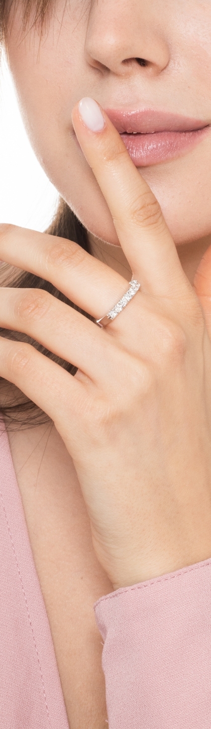 Anillo tipo Veretta con 9 Piedras en Oro Blanco de 18 Quilates con Diamantes Naturales