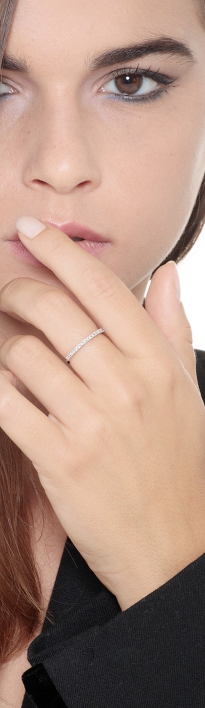 Anillo de alianza en oro blanco 18k con diamantes