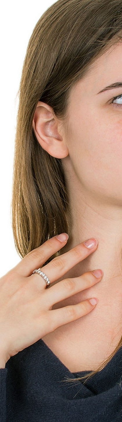 Anillo media alianza oro blanco 18 kilates y 9 diamantes