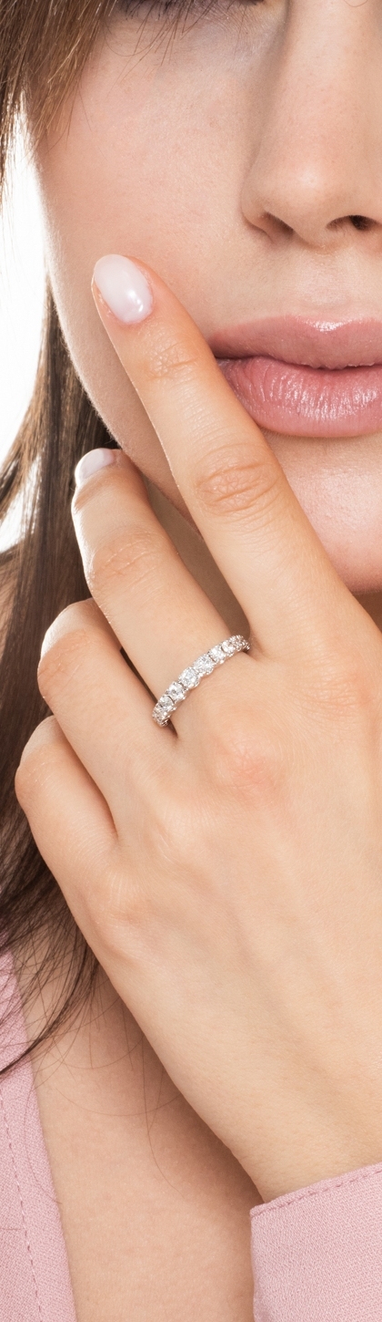 Anillo tipo alianza oro blanco 18k con diamantes, ct 0.90