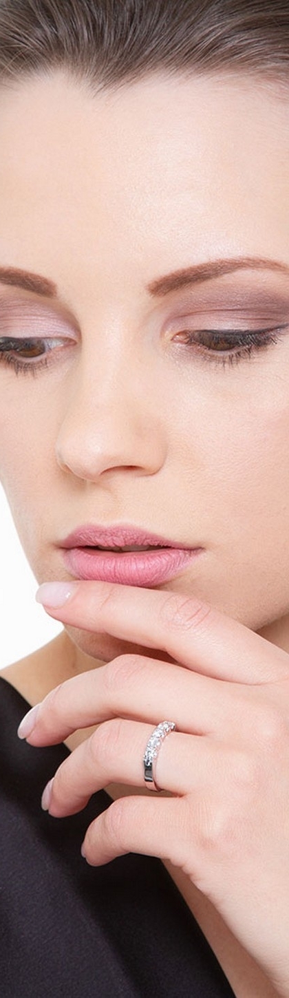 Media alianza con 5 diamantes de 0,50 quilates en oro blanco 18 kilates