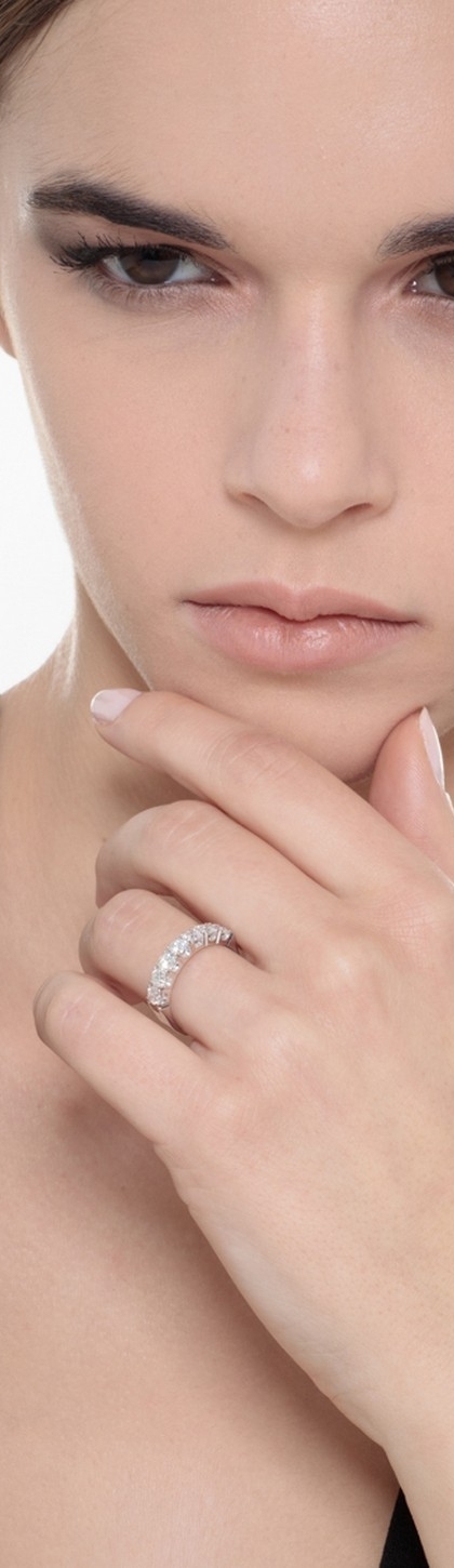 Anillo media alianza oro blanco 18 kilates y 9 diamantes